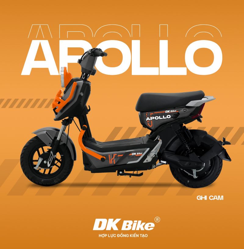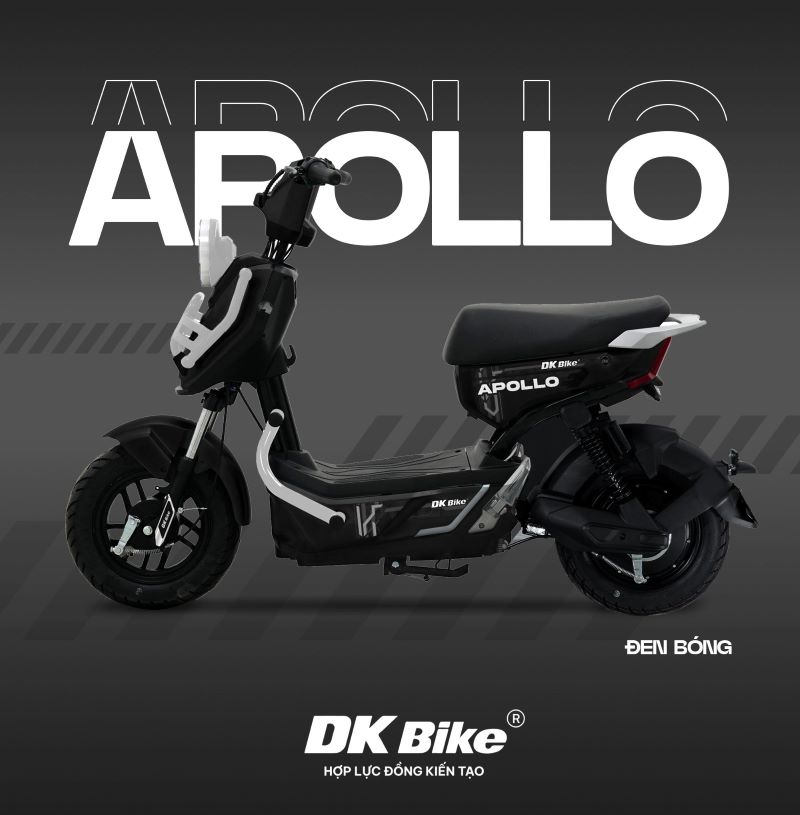 Mua tại TiktokTính năng nổi bật của xe đạp điện DK Apollo Xe đạp điện DK Apollo là dòng sản phẩm mới sở hữu nhiều ưu điểm vượt trội về cả thiết kế và khả năng di chuyển như: Linh kiện nổi bật Khu vực sàn để chân rộng rãi, được lắp đặt thêm khung sườn để chân ở 2 bên tăng độ thoải mái, cho phép người dùng đa dạng tư thế ngồi. Đèn pha thiết kế cách điệu độc đáo. Đèn bi led ánh sáng mạnh và tập trung, độ chiếu sáng tốt. Mặt đồng hồ điện tử LCD sắc nét, hiển thị rõ ràng, trình bày thông số đẹp mắt và logic, dễ dàng nắm bắt thông tin. Yên xe chất liệu cao su có độ rộng vừa vặn, độ bền cao, thoải mái khi ngồi Lốp không săm cao cấp, có nhiều đường vân rãnh hạn chế trượt bánh