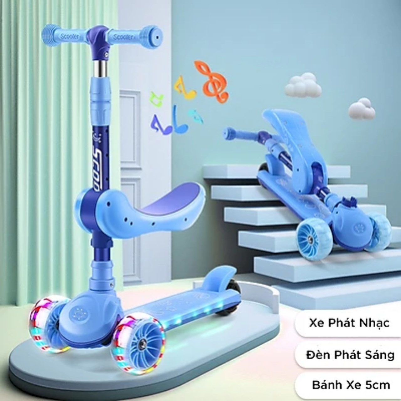 xe scooter 3 bánh phát sáng dễ dàng chuyển đổi 2 trạng thái
