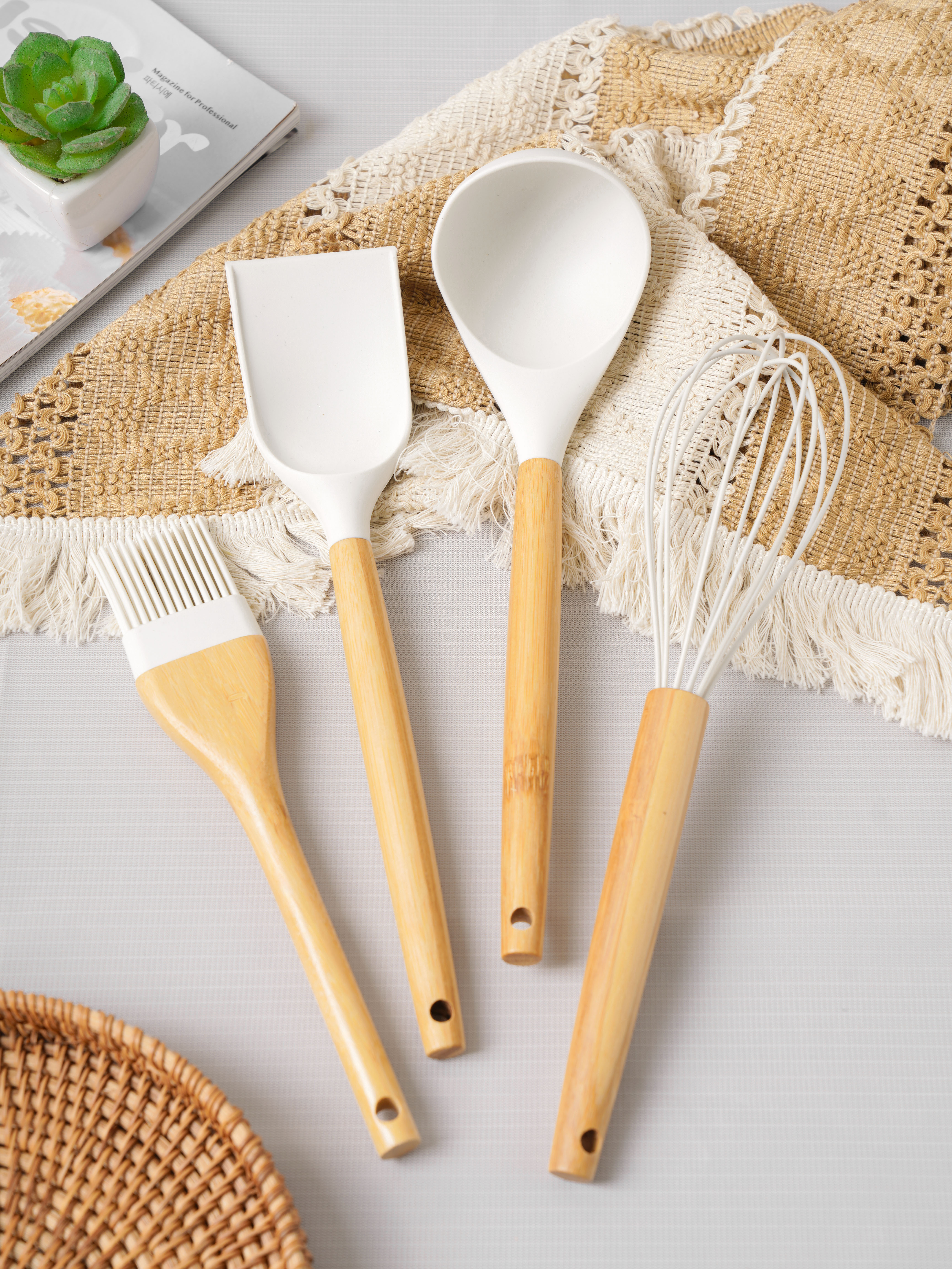 Xẻng silicone chiên xào kích thước : 305x65x25 màu sắc: trắng chất liệu : Bamboo / Silicone / Nylone
