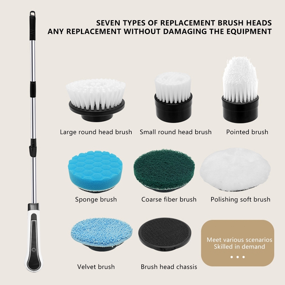 ✨Xiaomi USB Máy cọ rửa nhà cửa cầm tay đa năng , bàn chải vệ sinh đầu xoay 360 với 7 đầu thay thế Bàn chải vệ sinh cầm tay