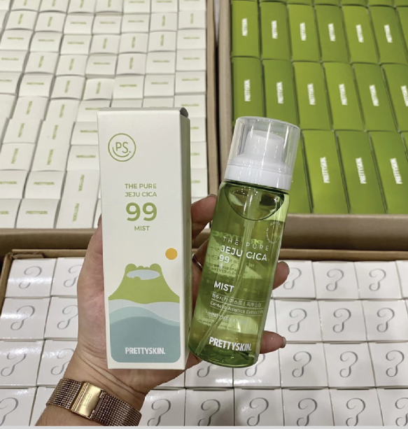 Xịt khoáng rau má Pretty Skin The Pure Jeju Cica 99 Mist làm dịu cấp ẩm cho da Xuất xứ: Hàn Quốc. Thương Hiệu: Prettyskin. Dung tích: 100ml. Phù hợp: Mọi loại da, đặc biệt