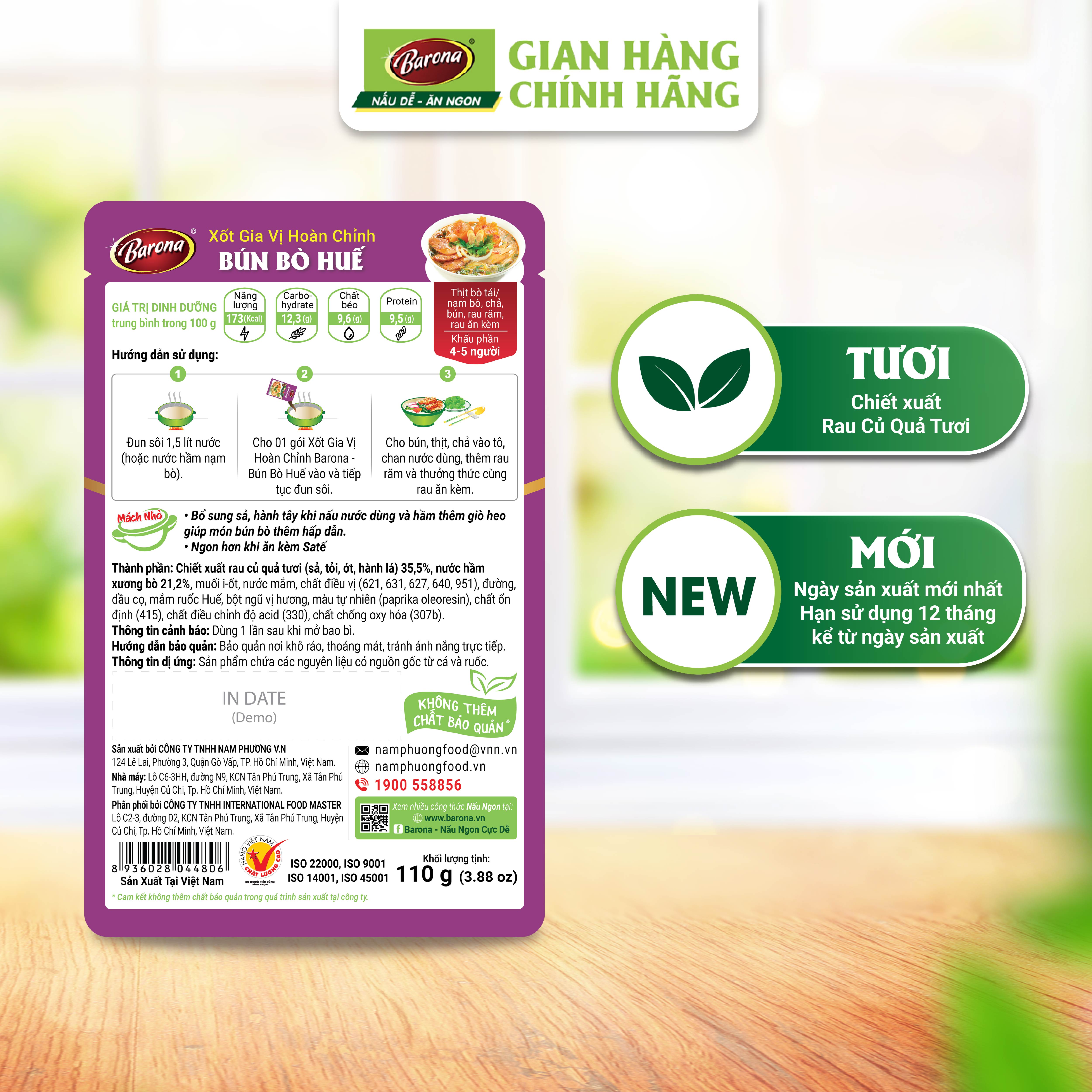 Gia Vị Bún Bò Huế Barona 110g tươi ngon chuẩn vị không cần nêm nếm Gói Gia Vị Nấu Bún Bò Huế, Xốt Gia Vị Hoàn Chỉnh Barona Bún Bò Huế 110g là công thức