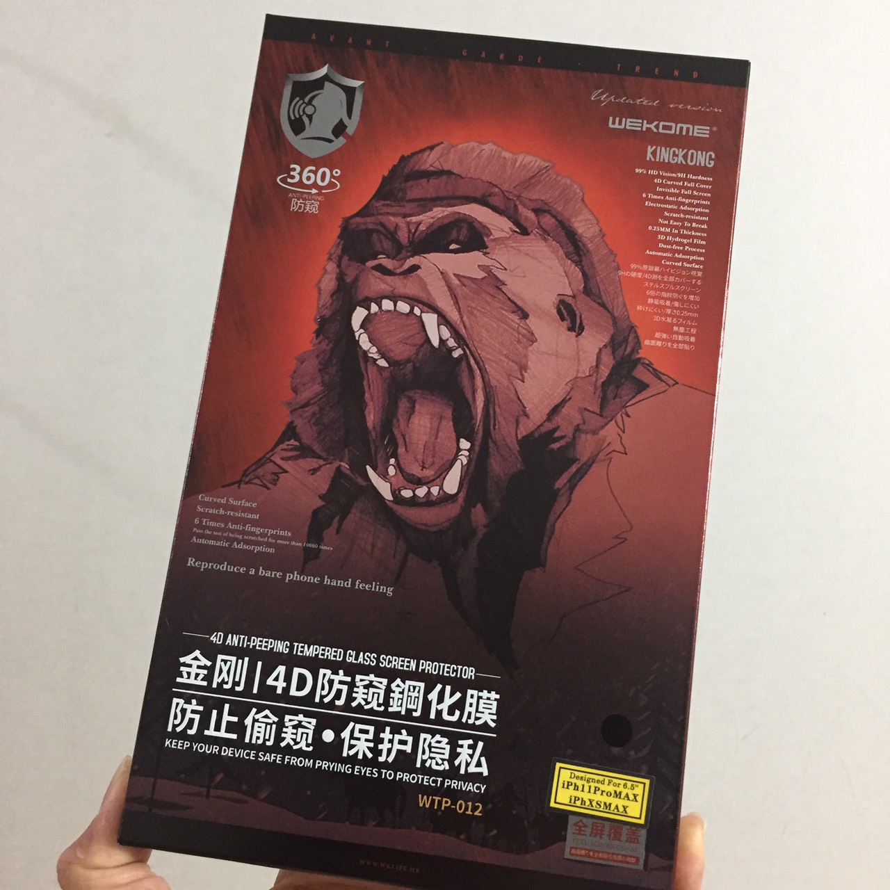 ✨[ Xs Max ; 11ProMax ] Cường lực chống nhìn trộm full màn hình cho iP 11 6.5inches Wekome Kingkong 4D WTP-012 _ Hàng chính hãng
