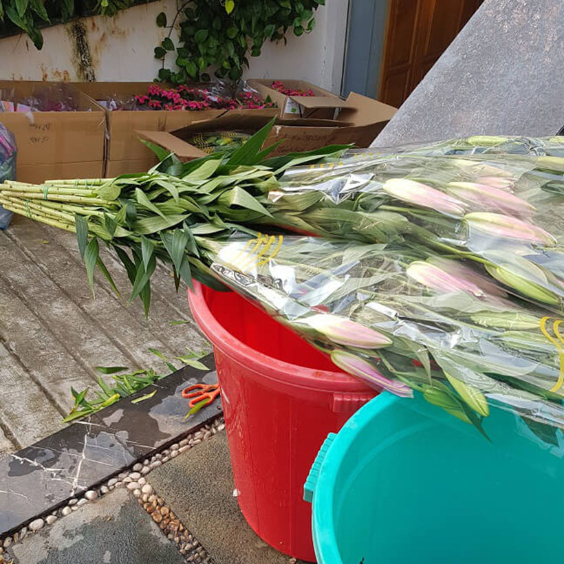 - Bước 1: Thu hái hoa Lily vào thời điểm thích hợp (Nêu cắt sớm từ 2 – 3 ngày so với bình thường)