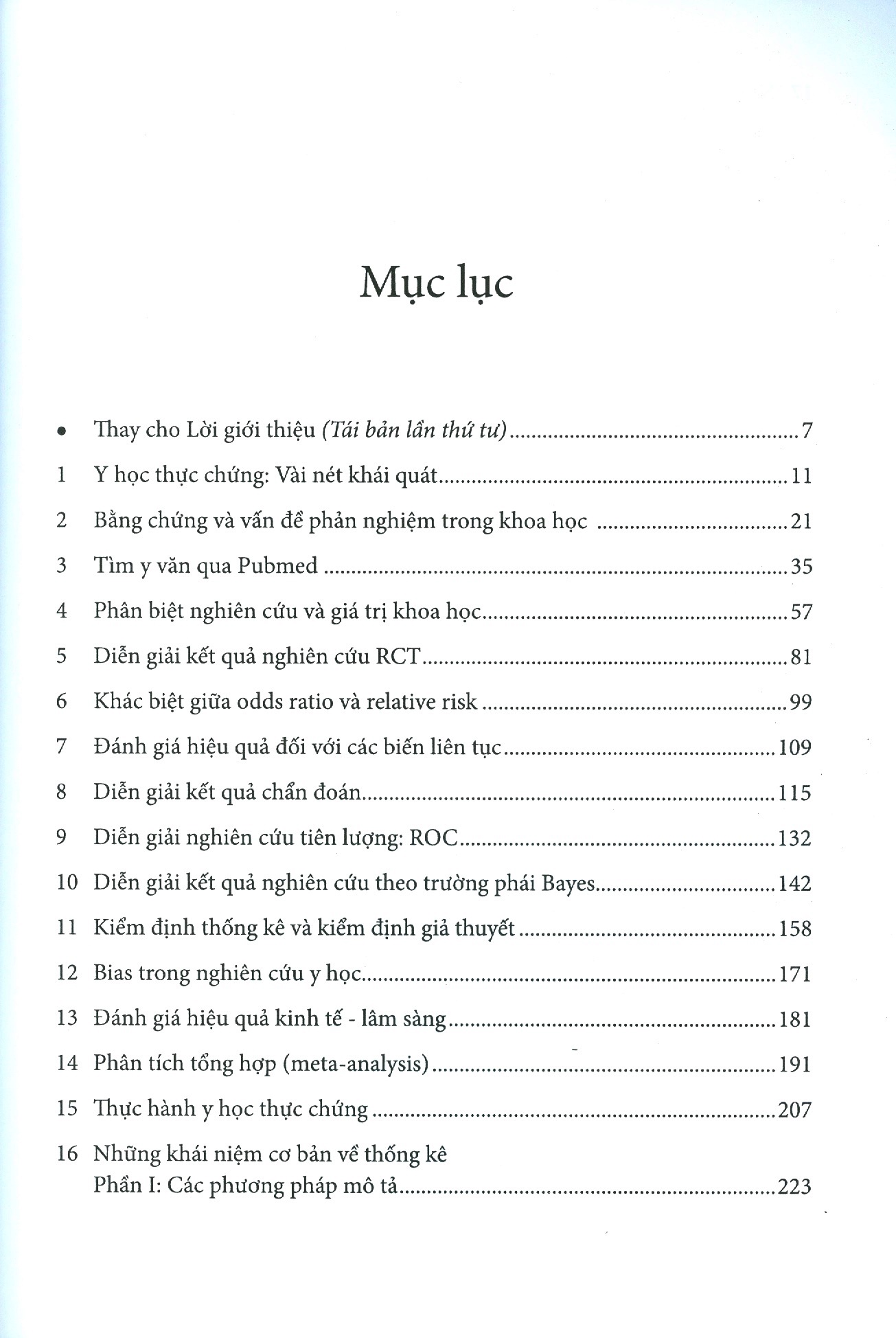 - Cuốn sách nhỏ này giới thiệu các phương pháp truy tìm, thẩm định, xử lí và ứng dụng thông tin cho các mục đích lâm sàng. Bạn đọc sẽ tìm thấy khá nhiều khái niệm dịch tễ học và một số phương pháp phân tích số liệu thường thấy trong các bài báo y khoa trên các tạp san y học quốc tế.