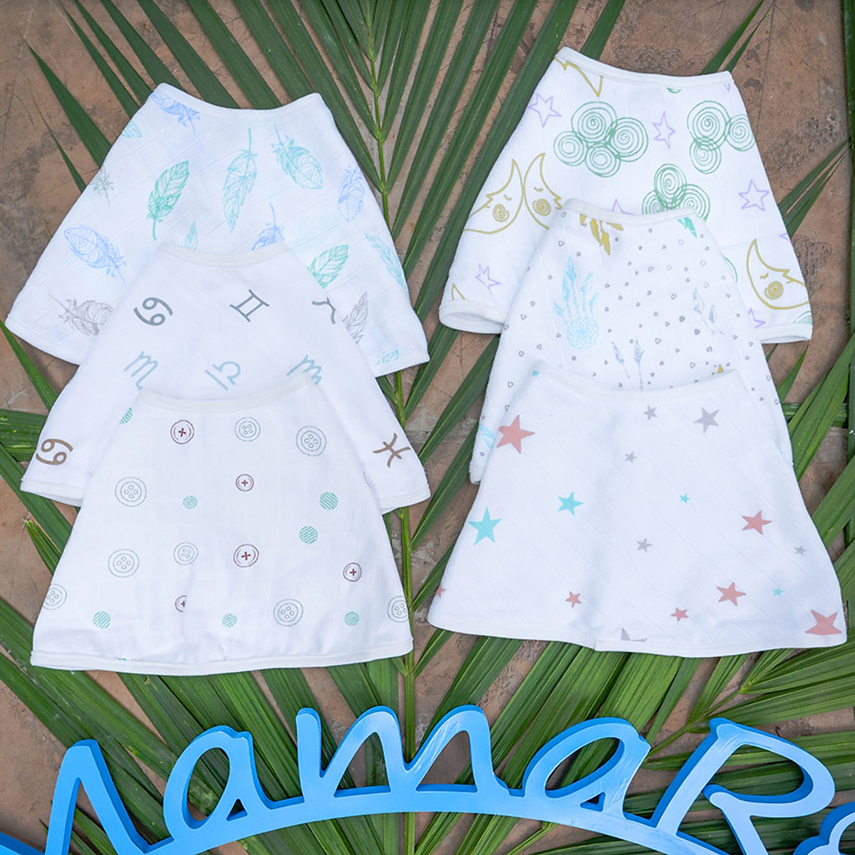 Yếm cho bé được làm từ chất liệu hữu cơ tự nhiên nên cực kỳ an toàn cho làn da nhạy cảm của bé. Yếm cho bé được làm từ chất liệu 100% Cotton Muslin