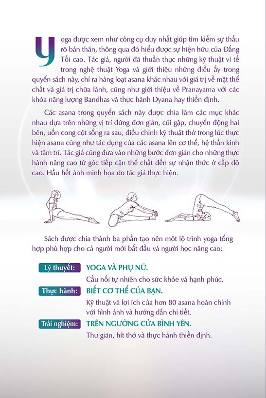Sách được chia thành ba phần tạo nên một lộ trình yoga tổng hợp phù hợp cho cả người mới bắt đầu và người học nâng cao: