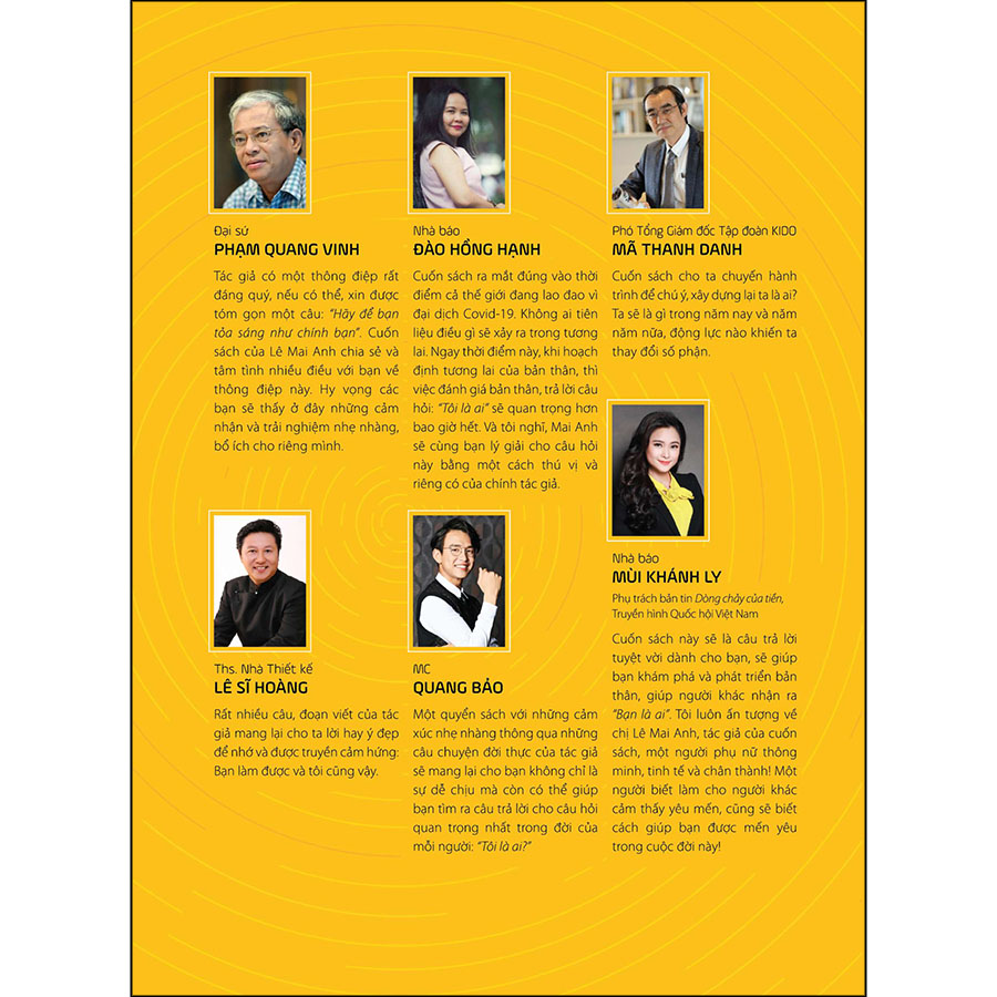 Với hơn 15 năm kinh nghiệm trong mảng truyền thông và quan hệ báo chí, Tác giả sẽ từng bước giúp bạn nhận thức rõ giá trị cốt lõi của bản thân, từ đó biết cách thể hiện tốt nhất ưu điểm của mình. Bắt đầu từ việc nhận diện thế mạnh tới phát huy chúng và nhận được đánh giá tích cực từ mọi người xung quanh – mỗi trang sách đều đầy ắp những thông điệp tích cực và những lời hướng dẫn chân thành.