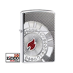 Đây Armor Polish Chrome hiển thị sáng hơn một thiết kế chip poker thanh lịch. Chip poker được tạo ra bằng cách sử dụng quy trình khắc sâu trong khi ngọn lửa Zippo tập trung vào chip mang lại màu đỏ cho thiết kế bằng quy trình inlay epoxy. Được đóng gói trong một hộp đựng dạng quà tặng. Để tối ưu hiệu suất, hãy dùng nhiên liệu bật lửa của Zippo.