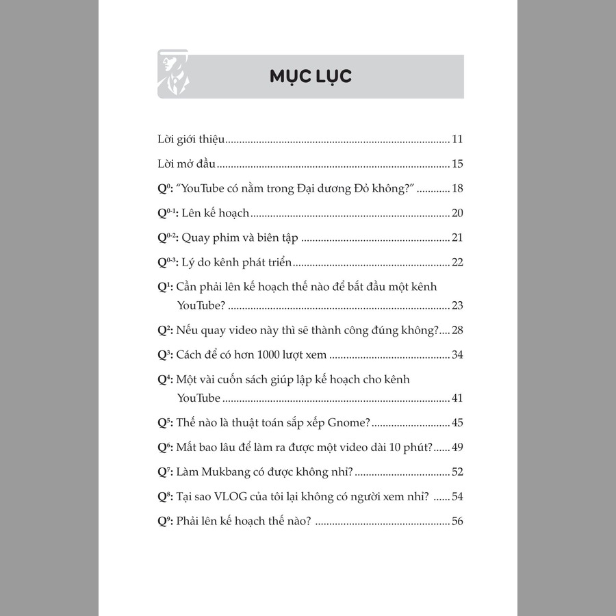 - Mặc dù 101 điều nên biết để trở thành Youtuber triệu views là cuốn sách dành cho người mới bắt đầu, nhưng sẽ có lúc bạn phải thốt lên “tại sao nội dung lại khó đến vậy?”. Tuy nhiên, có một sự thật rằng bạn cần hiểu rõ đến mức độ này thì mới có thể điều hành kênh YouTube tốt và hiệu quả được. Từ những kiến thức cơ bản đến phần lập kế hoạch và chủ yếu là các phương pháp, nó sẽ giúp bạn tự tin hơn và có một kiến thức nền tảng vững chắc để bắt đầu xây dựng cho mình một kênh Youtube triệu views. Mục lục ... Tóm tắt nội dung