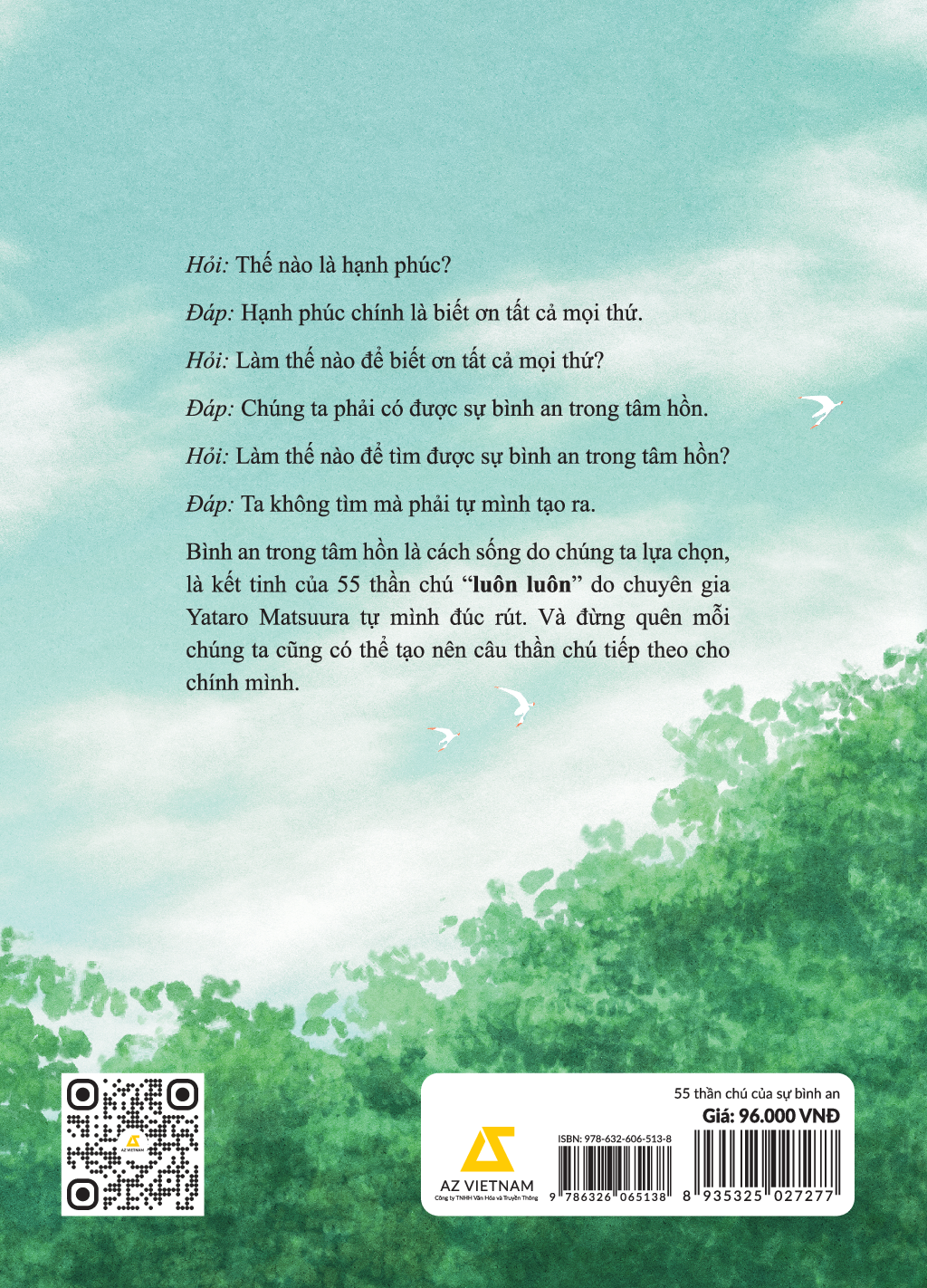 Những thói quen "luôn luôn" ấy, tưởng chừng như nhỏ bé, nhưng lại là những viên gạch vững chắc xây nên nền tảng của hạnh phúc. Chúng ta không cần phải đợi đến khi thành công rực rỡ, hay có được những điều kiện hoàn hảo mới cảm thấy hạnh phúc. Đây cũng chính là điều mà Yataro Matsuura muốn truyền tải trong cuốn sách “55 thần chú của sự bình an”. Cuốn sách là những chia sẻ được đúc rút từ chính tác giả, là những lời khuyên chân thành và quý báu sẽ đồng hành cùng bạn trong quá trình xây dựng một lối sống tốt đẹp hơn.