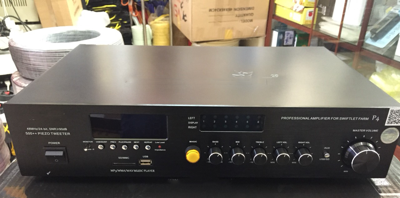 Mua tại TiktokAMPLY P4 (600 loa) Mã số : AMP4 Thiết kế theo tiêu chuẩn chuyên nghiệp âm thanh vòm, trong ngành nuôi chim yến. Âm thanh phát cho tiếng trong trẻo, không bị rè, méo tiếng. Vỏ chắc chắn hơn, dày hơn so với các Amply khác Núm điểu chỉnh bằng nhôm cao cấp. Amply đọc được nhiều file âm thanh với các đuôi khác nhau như MP3, WMA, WAV. Sản phẩm hỗ trợ cả thẻ SD, USB dung lượng đến 64GB. Tích hợp 2 loa ru trong AMPLIFER Hệ thống chống chập, quá tải.