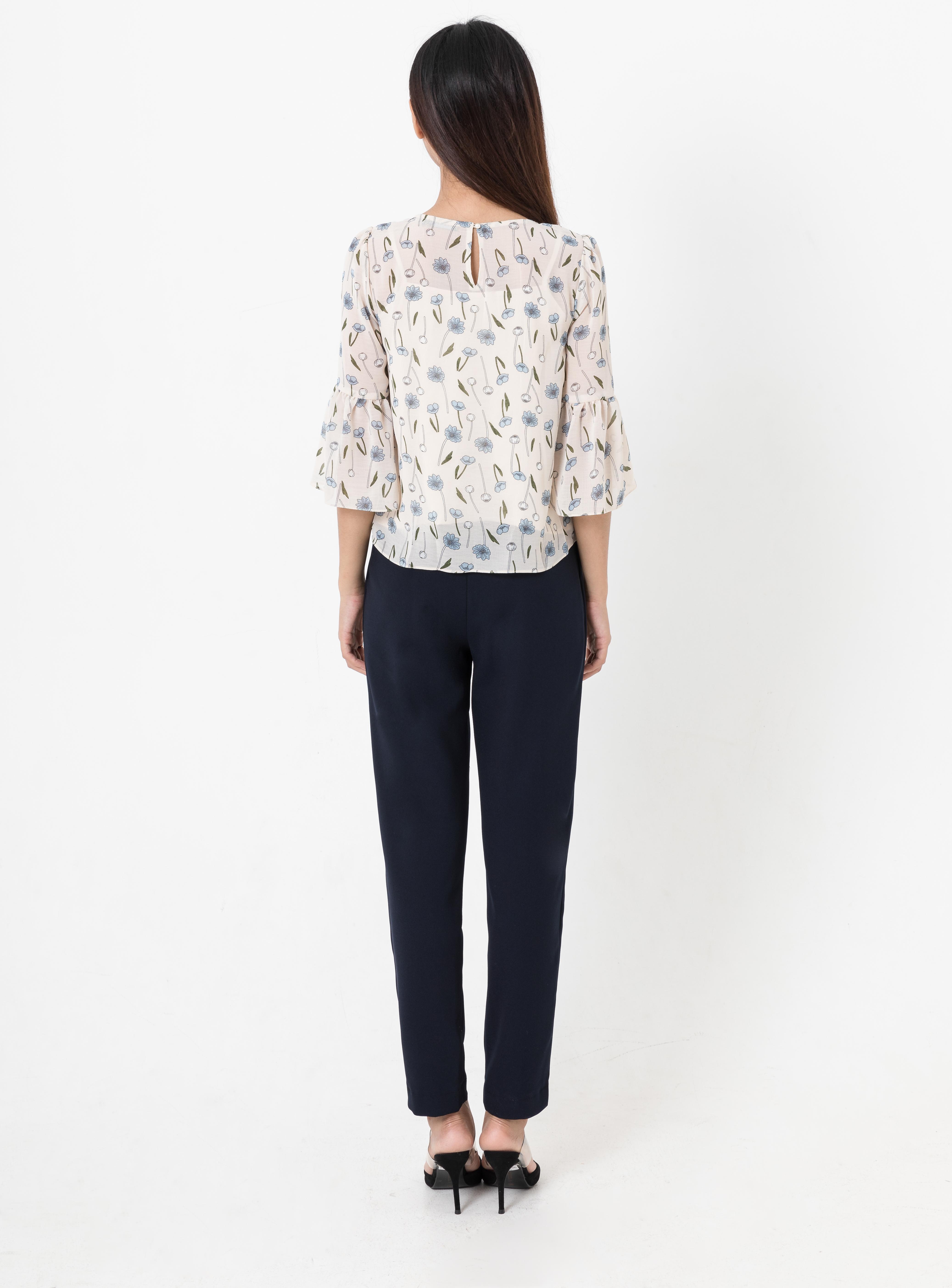 Áo croptop voan hoa với phần tay chuông trẻ trung, nữ tính. Áo có thể phối với nhiều loại trang phục theo nhiều phong cách từ quần, chân váy công sở đến quần sóc, chân