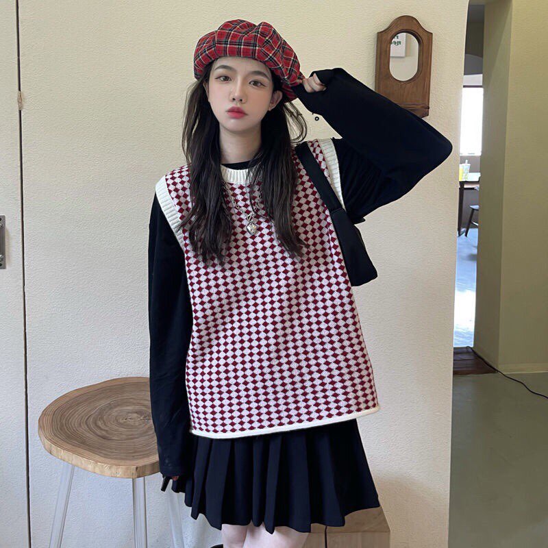 Áo len gile họa tiết caro kiểu dáng hàn quốc phối siêu xinh A521