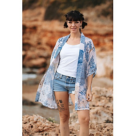 Áo Khoác Dài Isla Bonita, chất lụa mềm mại, phối ren mảnh nhẹ nhàng phần viền cổ, có dây cột nơ nữ tính. Phom suông. Dài áo 110cm (50x110cm) Phù hợp đi biển, dạo phố,