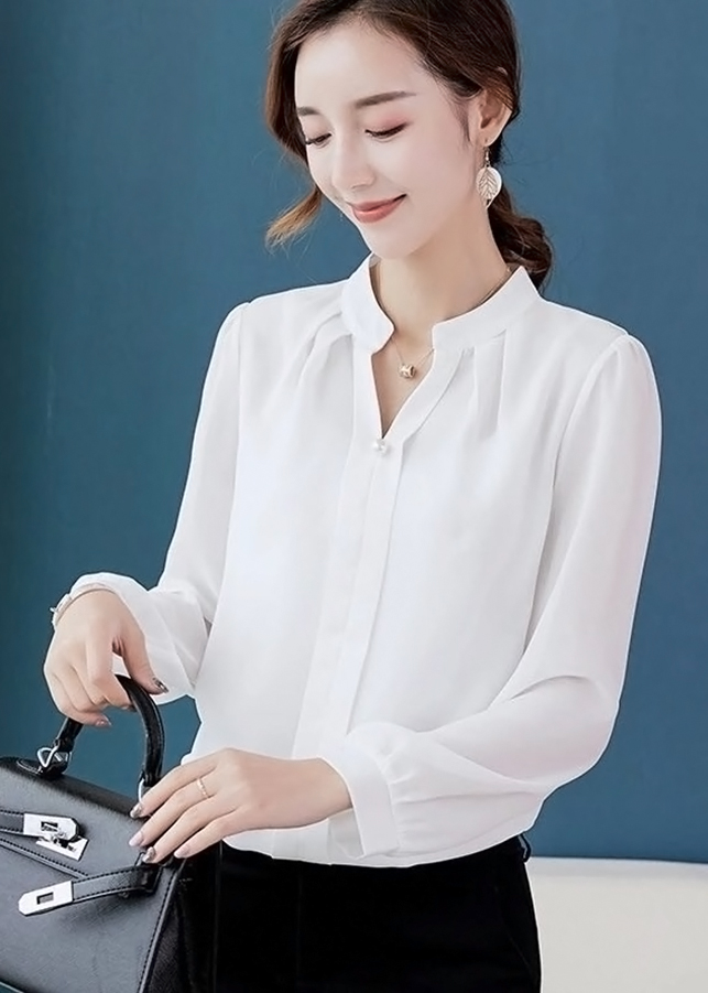 Kiểu dáng: áo sơ mi công sở cổ tim thanh lịch, phối nút duyên dáng, tay dài cài nút phong cách phù hợp công sở, công tác, đi dạy, đi học, đi tiệc Chất liệu: