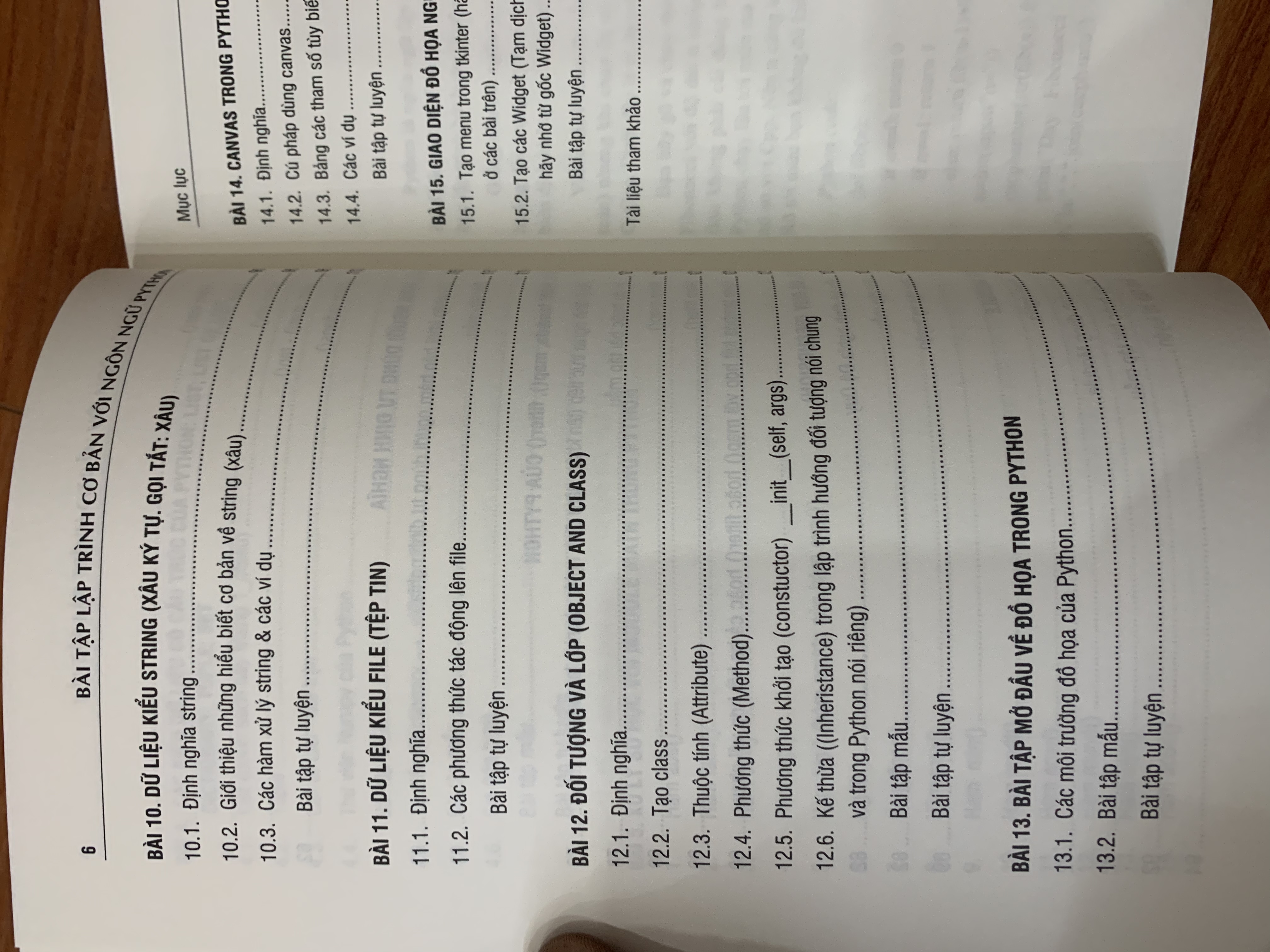 Mua tại TiktokNỘI DUNG SÁCH BÀI 1. BẮT ĐẦU VỚI PYTHON BÀI 2. CÁC LỆNH RẼ NHÁNH (CÁC LỆNH CHUYỂN ĐIỀU KHIỂN) BÀI 3. CÁC LỆNH LẬP BÀI 4. CÁC KIỂU DỮ LIỆU CÓ CẤU TRÚC CỦA PYTHON... BÀI 5. XỬ LÝ SỐ HỌC VỚI MODULE MATH TRONG PYTHON BÀI 6. HÀM NGƯỜI DÙNG TỰ ĐỊNH NGHĨA BÀI 7. HÀM LAMBDA, MAP, FILTER CỦA PYTHOM BÀI 8. ĐỆ QUY (RECLIRSION) BÀI 9. MODULE BÀI 10. DỮ LIỆU KIỂU STRING BÀI 11. DỮ LIỆU KIỂU FILE (TỆP TIN) BÀI 12. ĐỐI TƯỢNG VỚI LỚP (OBJECT AND CLASS) BÀI 13. BÀI TẬP MỞ ĐẦU VỀ ĐỒ HỌA TRONG PYTHON BÀI 14. CANVAS TRONG PYTHON BÀI 15. GIAO DIỆN ĐỒ HỌA NGƯỜI DÙNG ( GRAPHIC USER INTERFACE - GUI-) THÔNG TIN CHI TIẾT Tác giả: Trần Thông Quế Nhà xuất bản Đại Học Quốc Gia Hà Nội Năm xuất bản: 2020 Số trang: 196