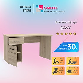 Mua tại TiktokMang đậm phong cách nội thất đơn giản, bàn làm việc gỗ Davy là một sự bổ sung hoàn hảo cho phòng làm việc, phòng đọc sách của bạn. Bàn làm việc Davy được thiết kế với nhiều tầng kệ và ngăn kéo mang đến nhiều không gian giúp bạn tổ chức sách vở và các vật dụng trang trí thoải mái. Sản phẩm là một giải pháp phù hợp cho những văn phòng hoặc căn hộ diện tích nhỏ. Sử dụng vật liệu ván ép công nghiệp MDF chống ẩm phủ Melamine cao cấp giúp bàn làm việc, bàn học gỗ SMLIFE có độ bền cao, chống trầy và chống ẩm rất tốt. Bạn có thể tự lắp đặt sản phẩm dễ dàng với các phụ kiện và hướng dẫn đi kèm.