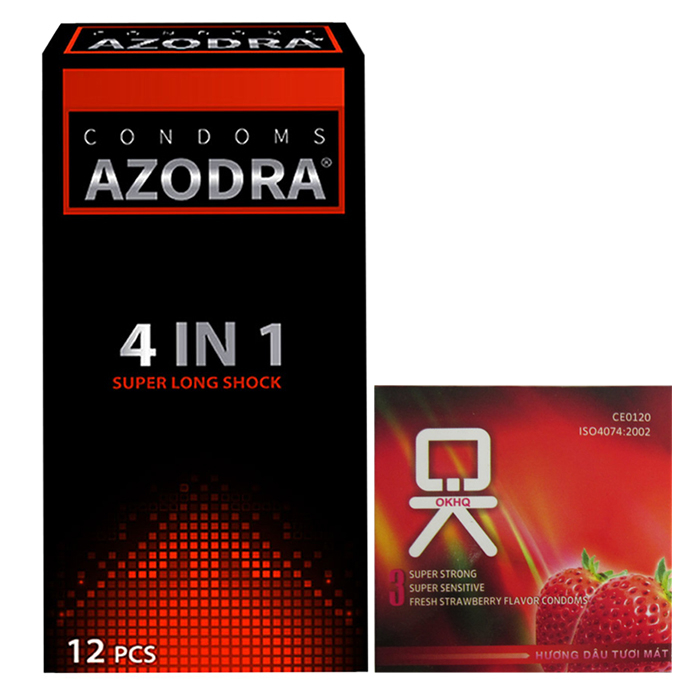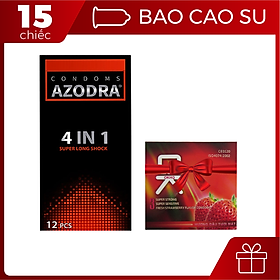 Mua tại Tiktok- Bao Cao Su Azodra Gân Gai (15 chiếc) + Tặng bao cao su Ok dâu (hộp nhỏ) với bao cao su Azodra 4in1 là bao cao su tổng hợp nhiều tính năng hàng đầu bên trong chiếc bao.