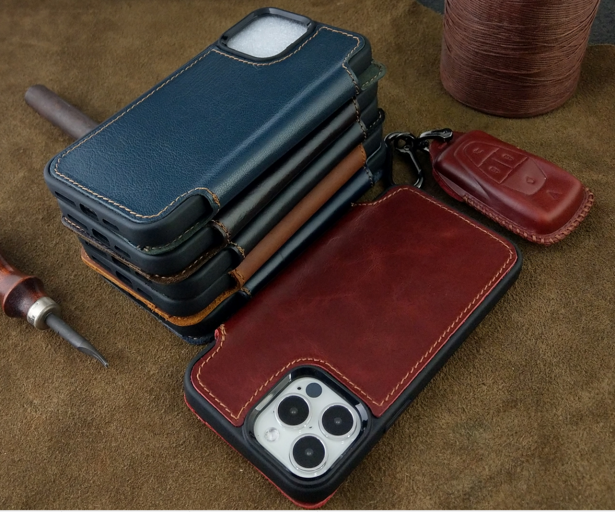 Bao da thật iPhone 15 pro max (iP12-13-14 pro max), da bò nguyên miếng bền bỉ, thủ công 90%