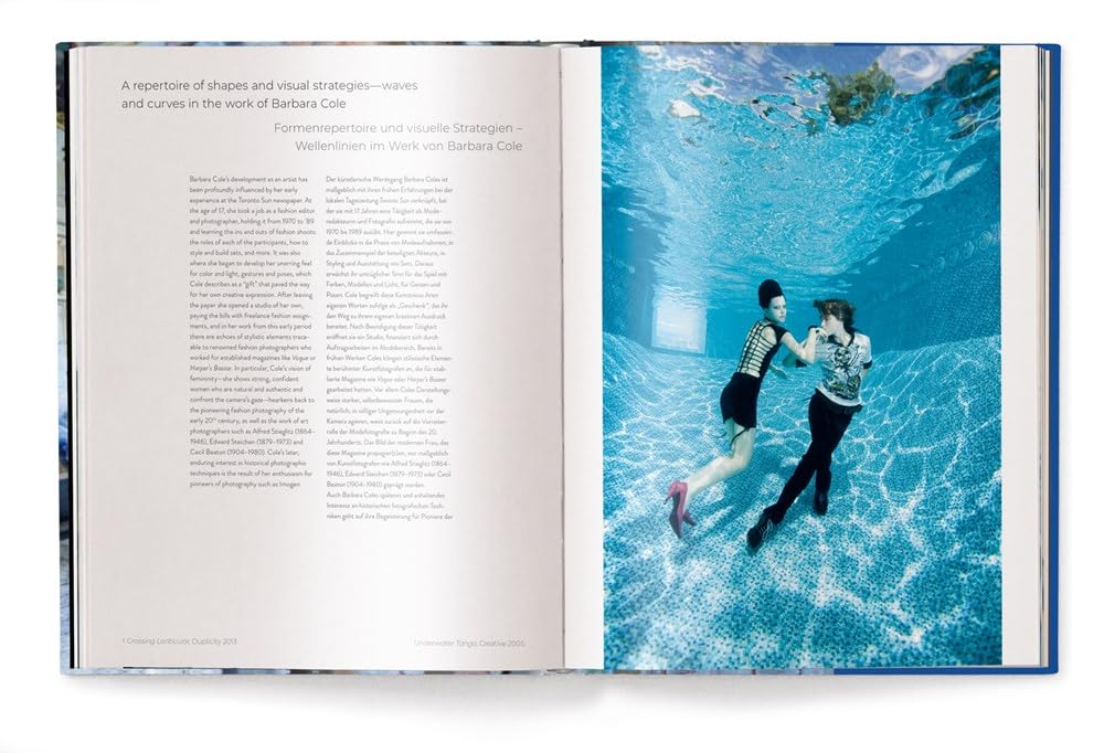 Barbara Cole's artwork is collected by public and private institutions and has been exhibited worldwide, including at the Canadian embassies in Washington, D.C. and Tokyo, Japan. Cole, who is often referred to as an inventor, uses a raw, hands-on photographic process that is consistent with her belief that the possibilities of photography are virtually limitless. Since the early 1980s, she has channeled her appreciation for the camera itself. She is dedicated to the history of photography by deviating from automatic cameras and techniques. Barbara Cole uses photography to play with notions of time, place, and identity. In her numerous series, Cole often asks the questions: how do you paint an image of timelessness? How do you capture the feeling of weightlessness in an image? Her ethereal photography takes on a quintessential painterly quality, with the transformation of figures a predominant theme in her work. Over the past 30 years, although she works with traditional photographic means, Cole's approach and aesthetic has become closer to that of a painter. The artist's work focuses on a powerful narrative, some with external motifs and others with intense figure transformations that alone tell the story. Cole's background in fashion and fashion editorial naturally leads to a process that channels her experience into creating a particular atmosphere with costumes and backdrops. Text in English and German.