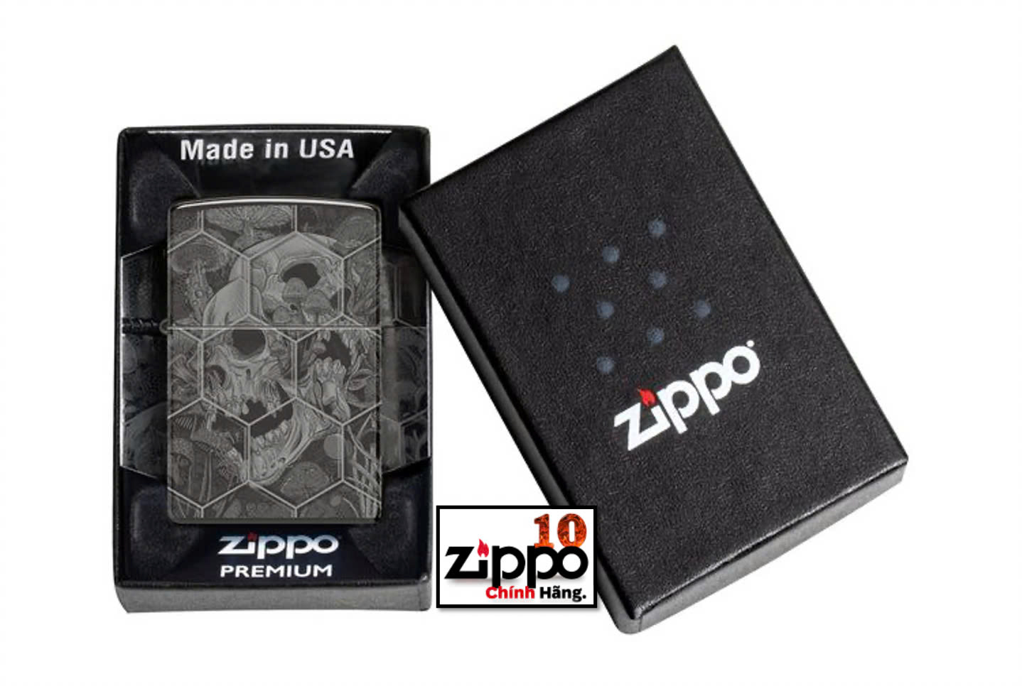 Được đóng khung theo họa tiết tổ ong phức tạp, nấm mọc ra từ những hộp sọ đang phân hủy trên mọi bề mặt của chiếc bật lửa High Polish Black cổ điển này với thiết kế Photo Image 360° bí ẩn. Được đóng gói trong hộp quà tặng. Để có hiệu suất tối ưu, hãy đổ đầy nhiên liệu bật lửa Zippo. Được đóng gói trong hộp quà tặng. Để có hiệu suất tối ưu, hãy đổ nhiên liệu bật lửa Zippo.