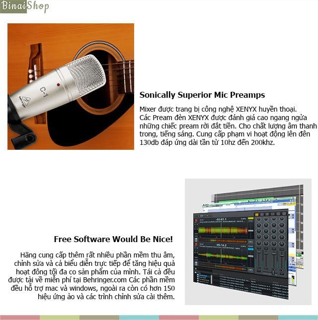 • 2 cổng mono đầu tiên của XENYX Mic Preamps có chất lượng so sánh được với các đèn pream-store độc ​​lập.