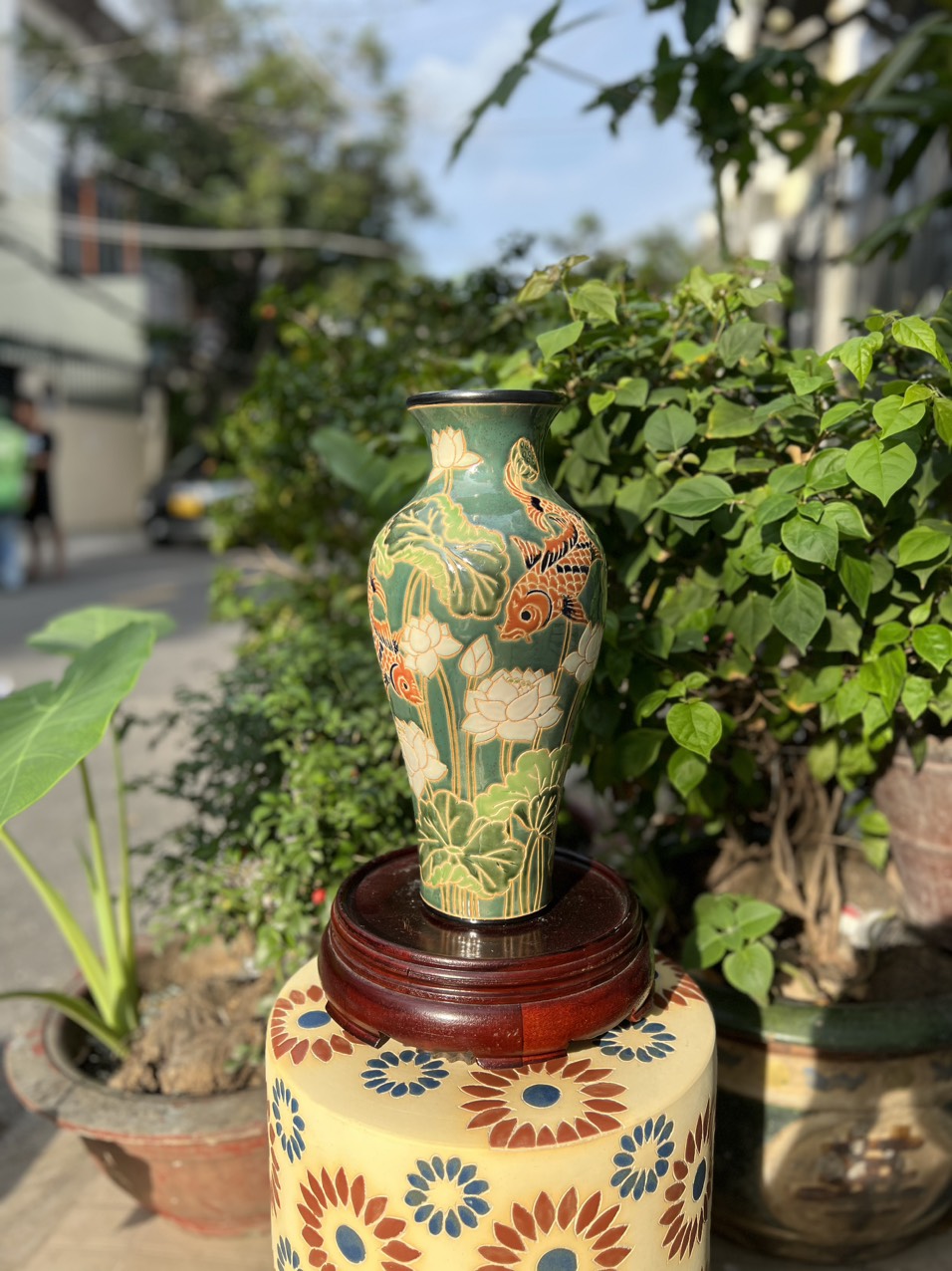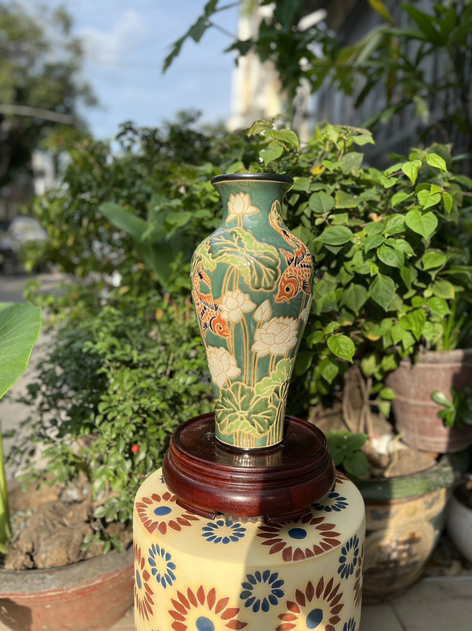 ✨BÌNH BÁCH HOA & SEN CÁ DÁNG THON 37CM GỐM SỨ THỦ CÔNG NAM BỘ