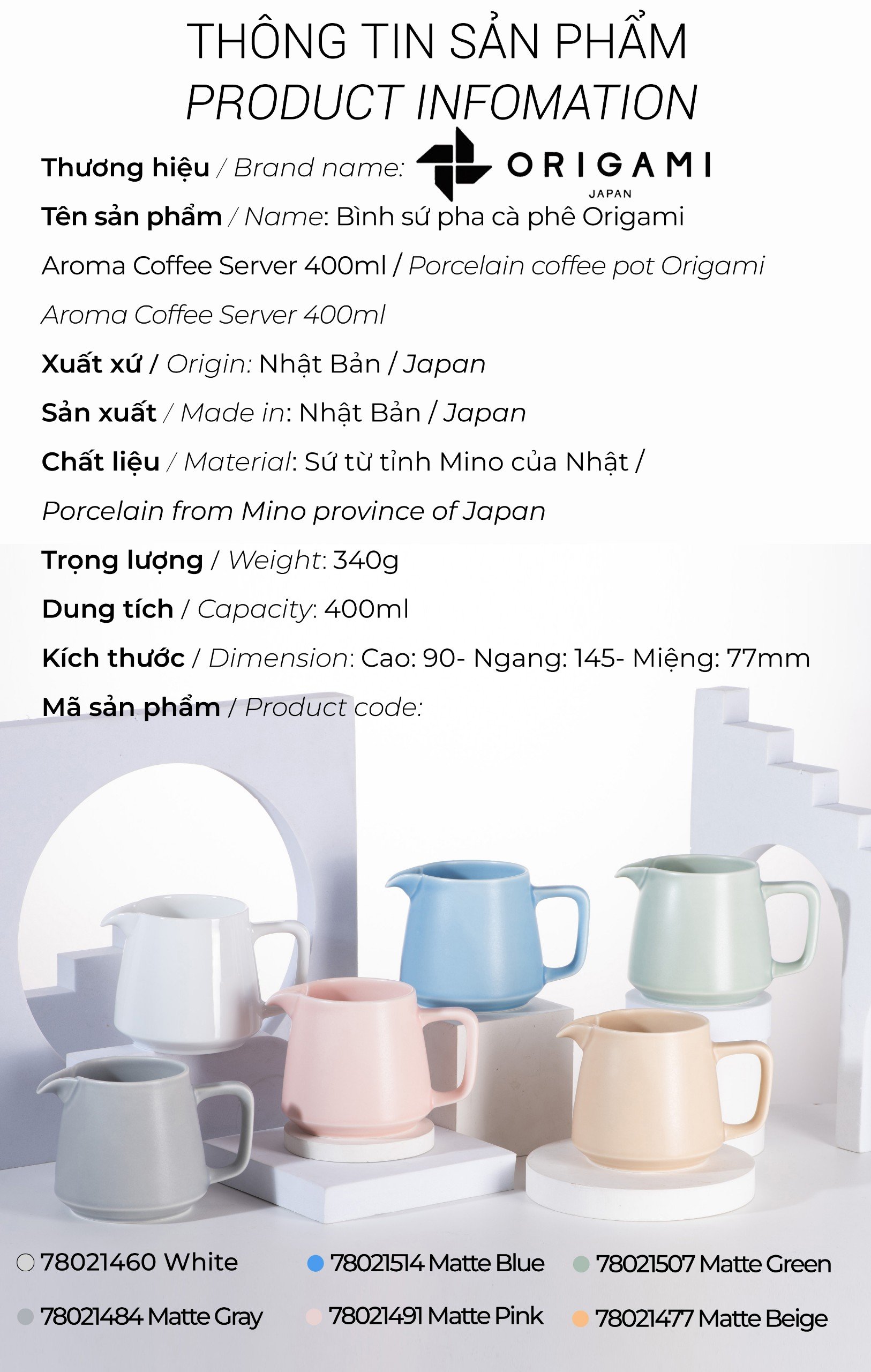 BÌNH PHỤC VỤ CÀ PHÊ BẰNG SỨ ORIGAMI AROMA SERVER 400ML