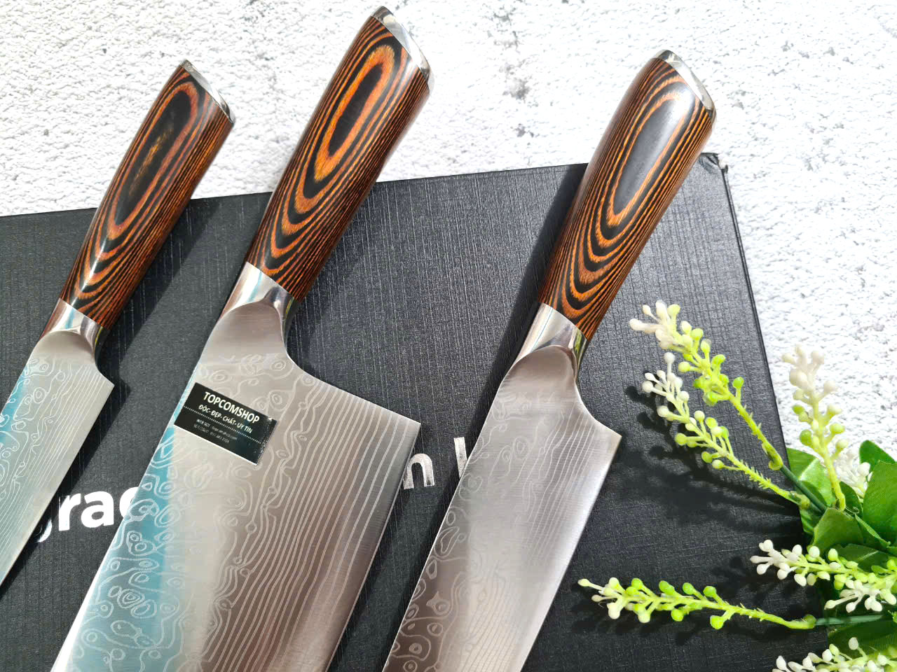Bộ 3 Dao, Bộ Dao Nhật Bản, Bộ Dao Lưỡi Thép, Bộ Dao Nhà Bếp - Có Chuôi Có Bao Da