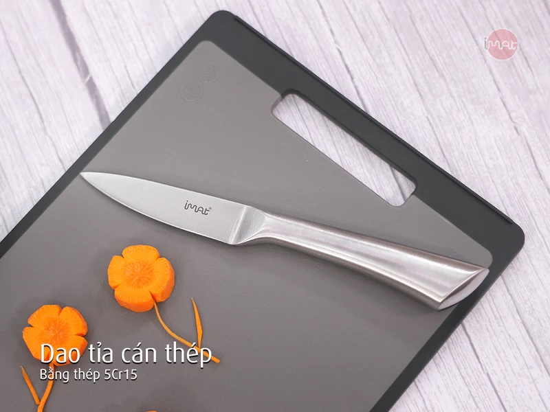 Bộ dao nhà bếp iMat đáp ứng đầy đủ nhu cầu chế biến thực phẩm với thiết kế bền bỉ và lưỡi thép 5CR15 sắc bén, giúp dễ dàng băm, thái mọi nguyên liệu. Bộ dao bao gồm 4 hoặc 5 con với tùy chọn cán gỗ hoặc cán thép, thiết kế tay cầm chắc chắn và độ hoàn thiện cao, là dụng cụ thiết thực cho mọi gia đình.