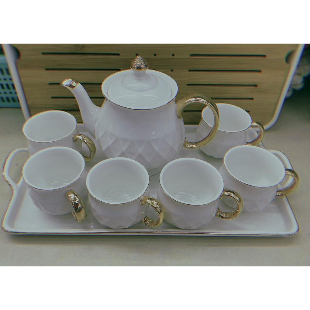 Bộ ấm trà men gấm vàng,gồm: 2 ấm trà 6 chén trà 7 lót đĩa Dòng men mới trên thị trường đang được nhiều KH lựa chọn