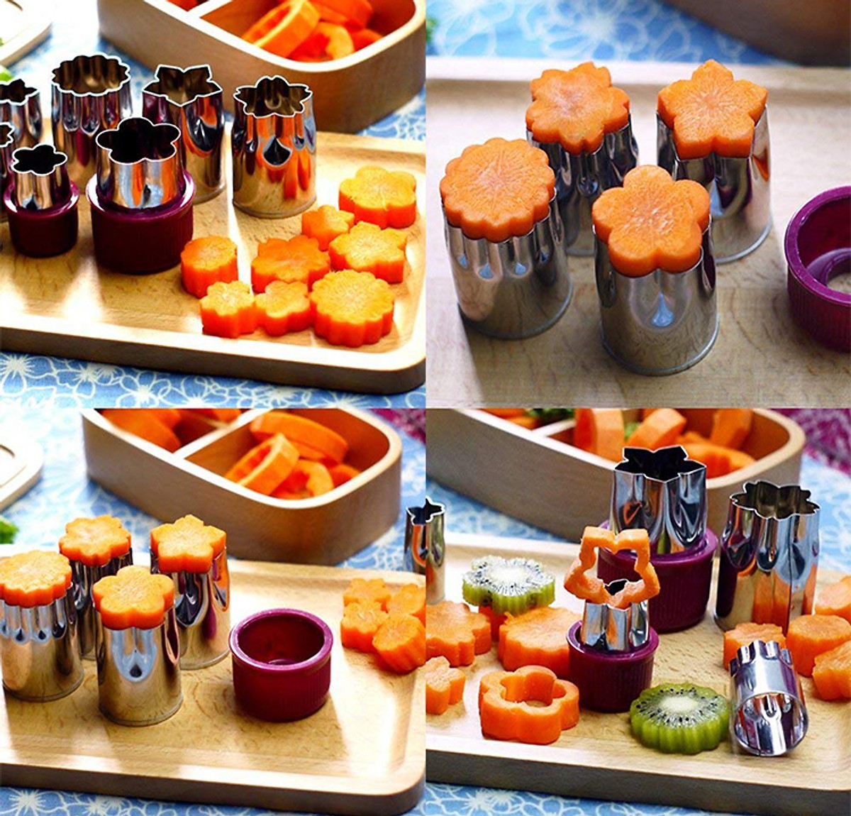 Mua tại TiktokBộ Khuôn Tỉa Củ Qủa 8 Món MÔ TẢ SẢN PHẨM Bộ Khuôn Tỉa Củ Qủa 8 Món luôn dễ dàng để cắt hoa quả thành nhiều hình dáng đẹp mắt chỉ trong 1 nốt nhạc. Việc bạn cần làm là ấn khuôn vào lát hoa quả có sẵn ( dày , mỏng tùy món ăn nha), lấy ra thì có ngay các loại hoa đẹp mắt. với khuôn này, nó sẽ giúp các bạn không mất nhiều thời gian mà còn tạo ra nhiều món ăn vừa ngon vừa đẹp. Bộ khuôn dễ chùi rửa, vì khuôn làm bằng thép không gỉ nên đừng lo bị sét nha. Ngoài ra dùng khuôn để cắt bánh hay rau câu đều ok hết , rất tiện dụng.