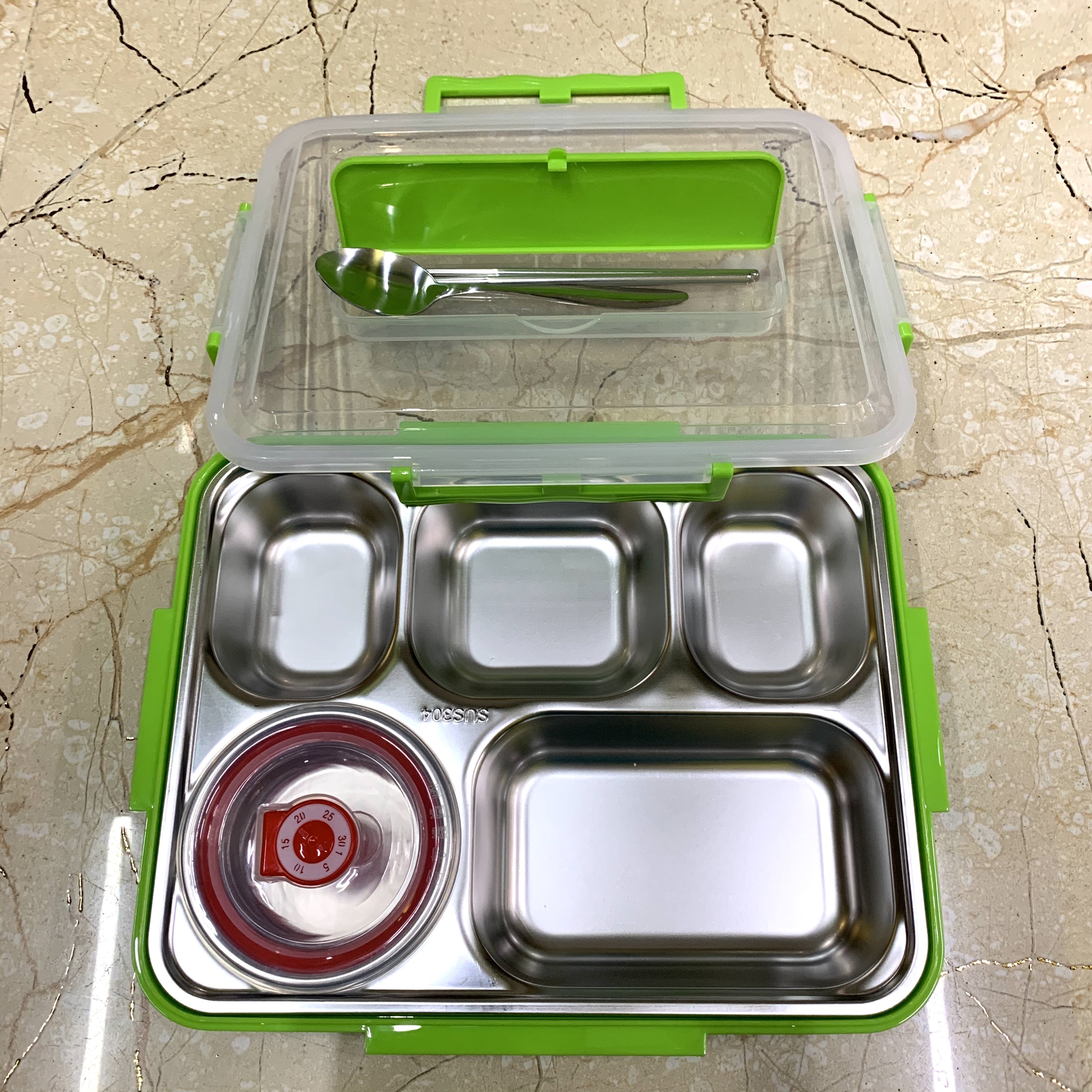 Khay cơm phần 5 ngăn inox 304 loại dày sâu đựng thức ăn