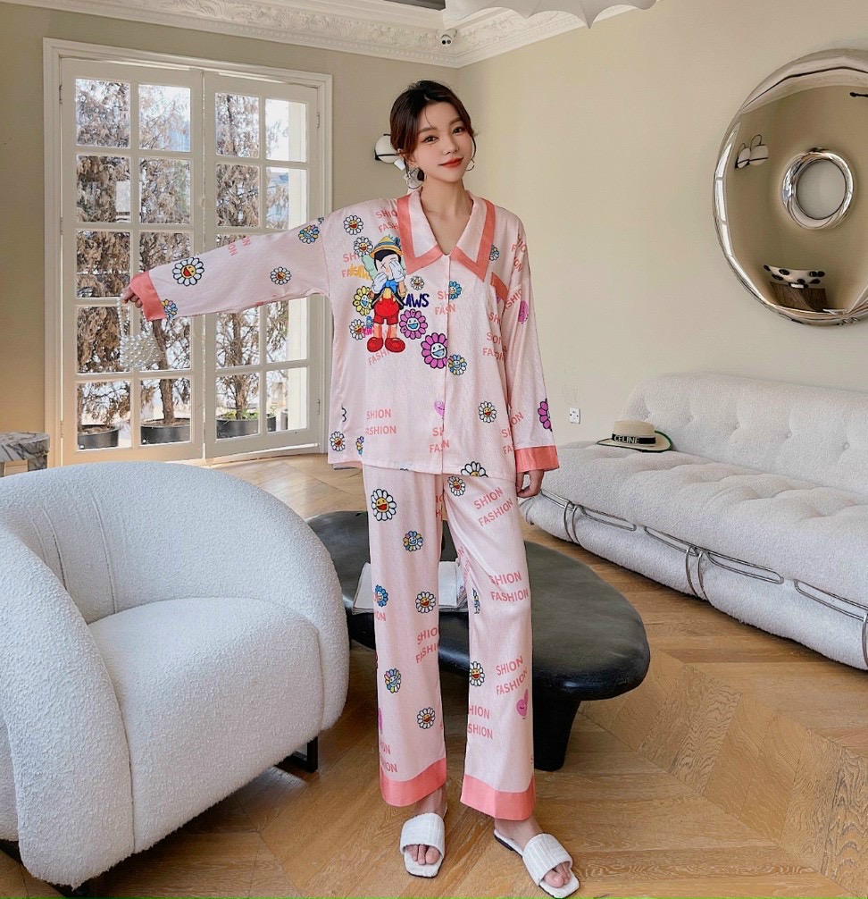 Đồ bộ pijama cho nữ dễ thương mặc nhà chất vải lụa latin cao cấp Giá 159k Điện thoại 076 226 5828