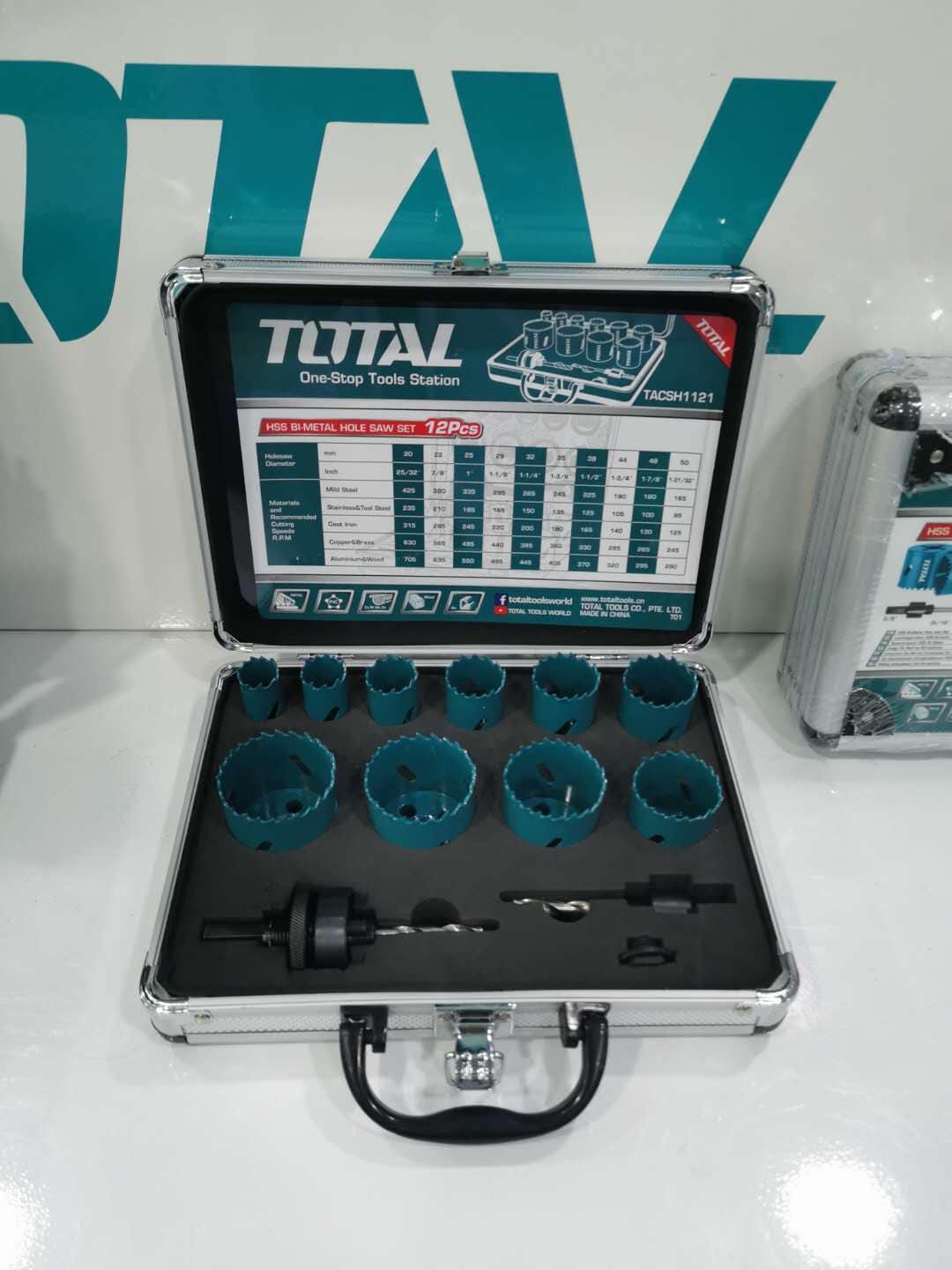 Thông số kĩ thuật -Mã sản phẩm: TACSH1121 -Nhà sản xuất: Total -Size:20mm,22mm,25mm,29mm,32mm,35mm,38mm,44mm,48mm,50mm, -2 lưỡi cưa khoét răng cưa - 10/T