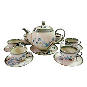 Ấm chén trà Bát Tràng - Bộ trà hoa nổi màu xanh coban
