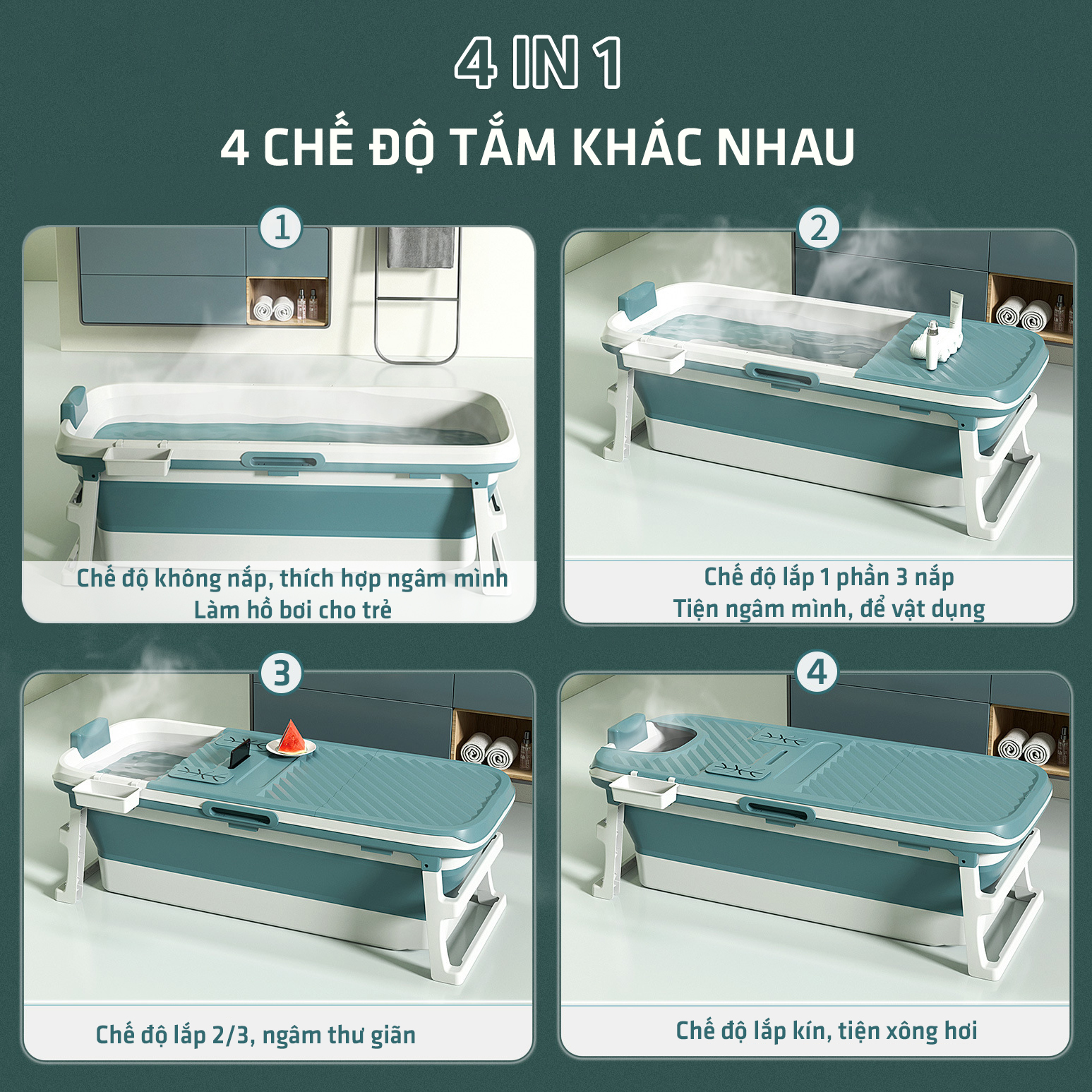 Bồn tắm gấp gọn cho người lớn, gia đình tắm, xông hơi thư giãn chất liệu nhựa PP và Silicon Cao Cấp