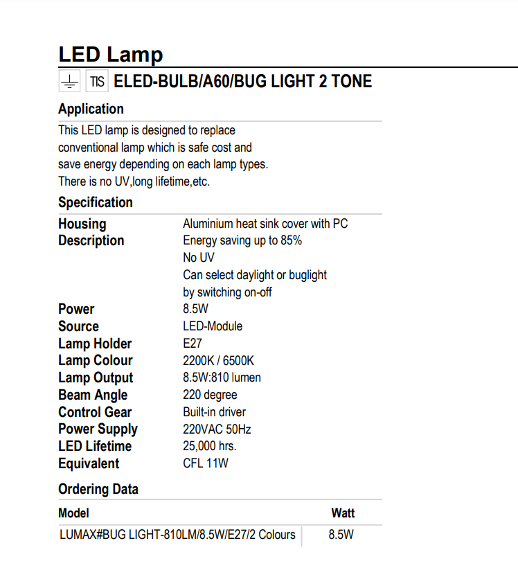 ✨BÓNG ĐÈN LUMAX#BUG LIGHT-810LM/8.5W/E27/2 COLOURS