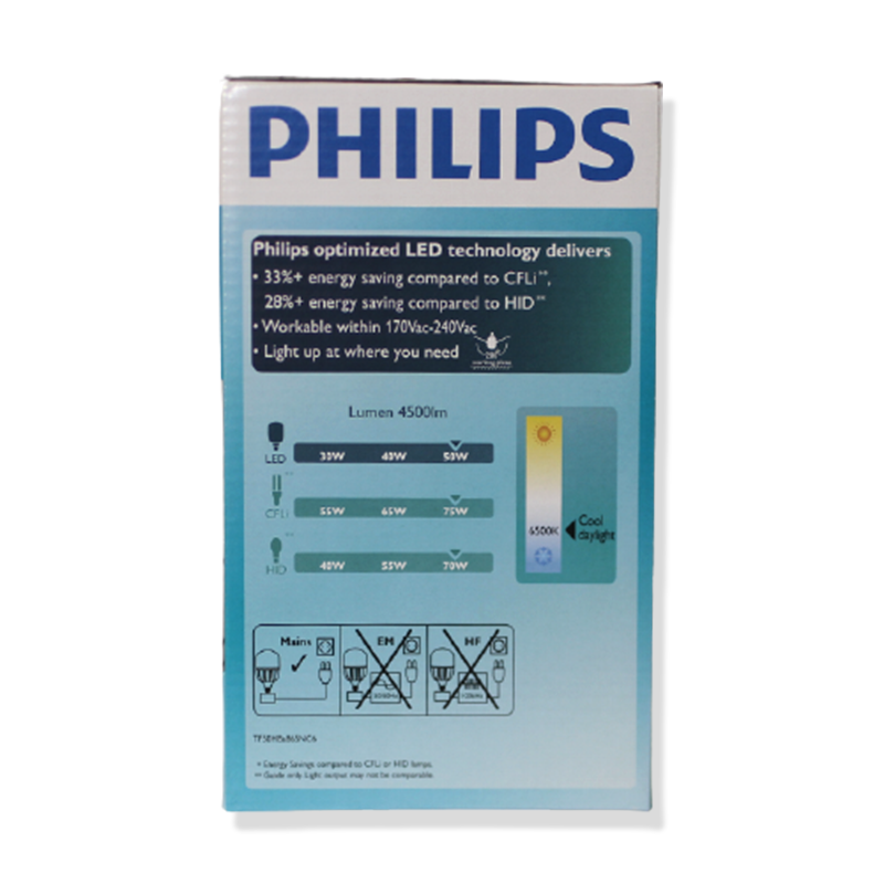 Công suất: 80W Điện áp: 220V/50-60Hz Quang thông: 8000lm/7400lm Nhiệt độ màu: 6500K/4000/3000K Chỉ số hoàn màu: 83 Kích thước (ØxH): (135 x 260) mm Bóng đèn LED Bulb LED TR135/80W.H Đặc tính của đèn: