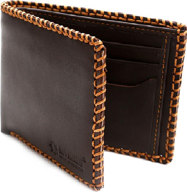 Ví/Bóp nam Huy Hoàng da bò viền chỉ màu nâu 2130