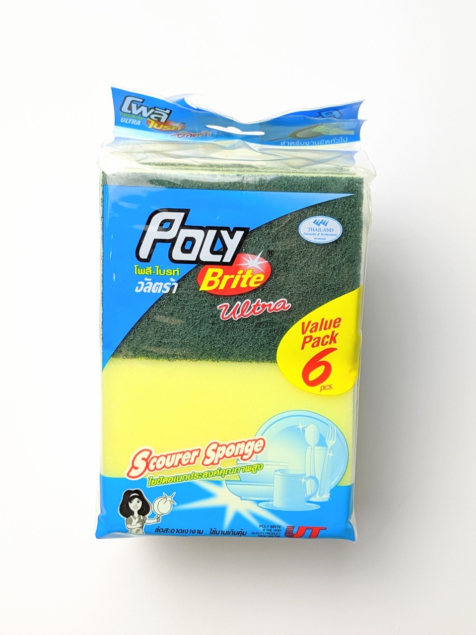Thương hiệu Poly Brite Nhập khẩu trực tiếp từ Thái Lan Được làm bằng chất liệu mút xốp cao cấp bọc lưới, giúp tạo nhiều bọt mịn một cách nhanh chóng rửa chén bát sạch