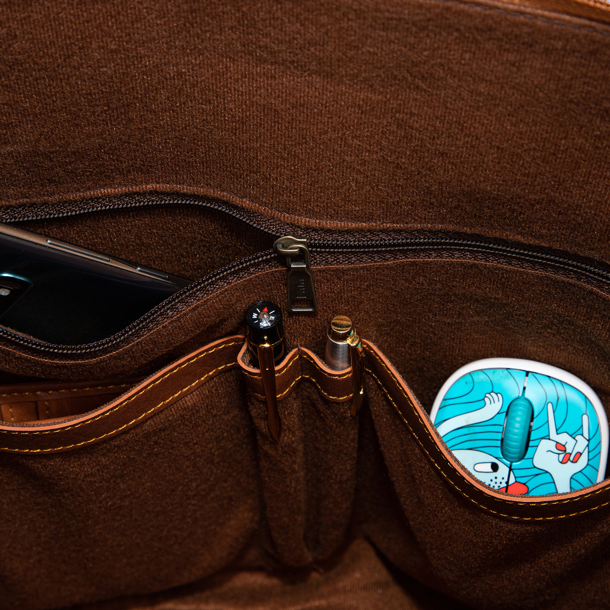 Lớp lót bên trong túi LATA CA28 được làm bằng vải nhung mềm mại.