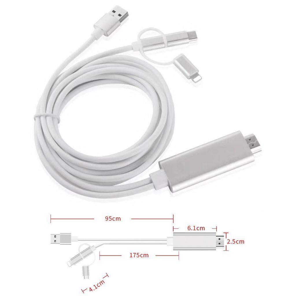Dây Cáp HDMI Chuyển Đổi TV 3 in 1 cho điện thoại chân Micro, Type C, IPhone (Lightning) dài 1.8m
