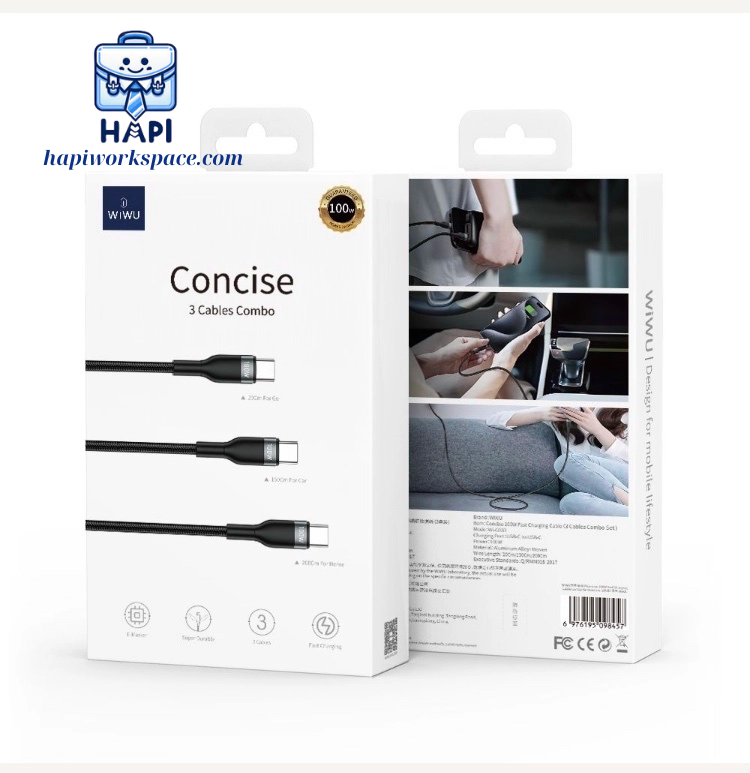 ✨Cáp sạc hàng chính hãng WiWU Concise 3-in-1 100W WI-C033, combo 3 cáp, bọc dù