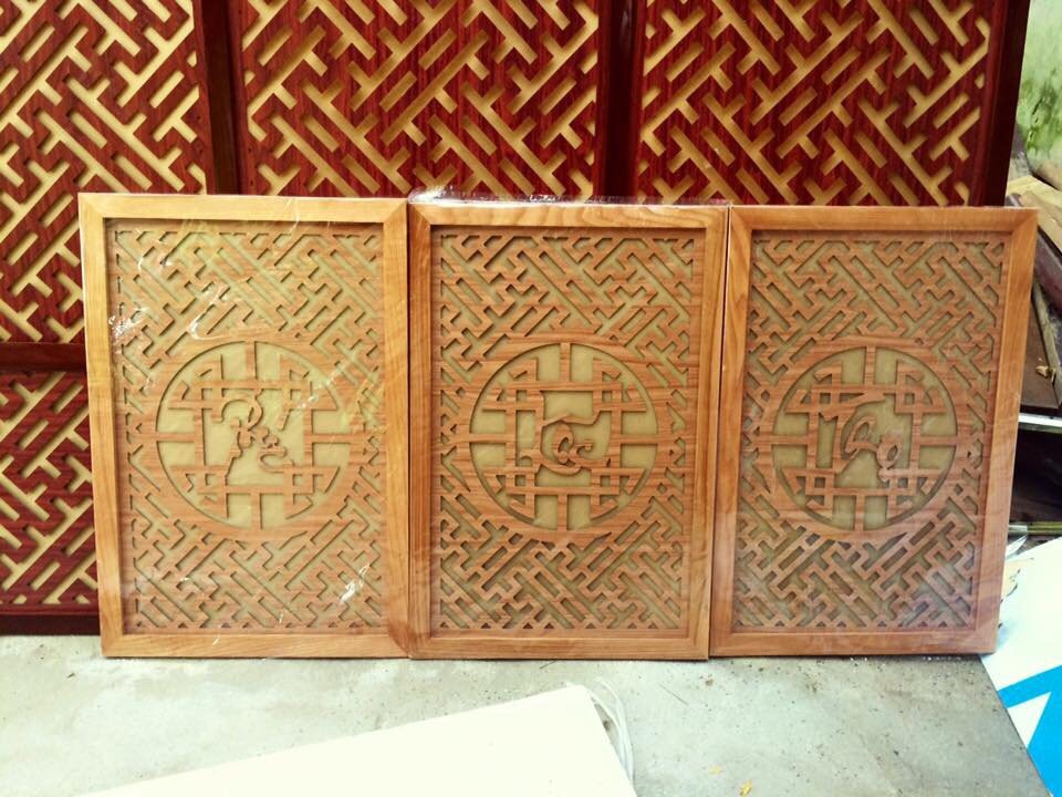 Combo phòng thờ gồm : 3 bàn thờ ( thổ công , gia tiên , phật ) + vách CNC gỗ sồi . Trả khách Hà Nội