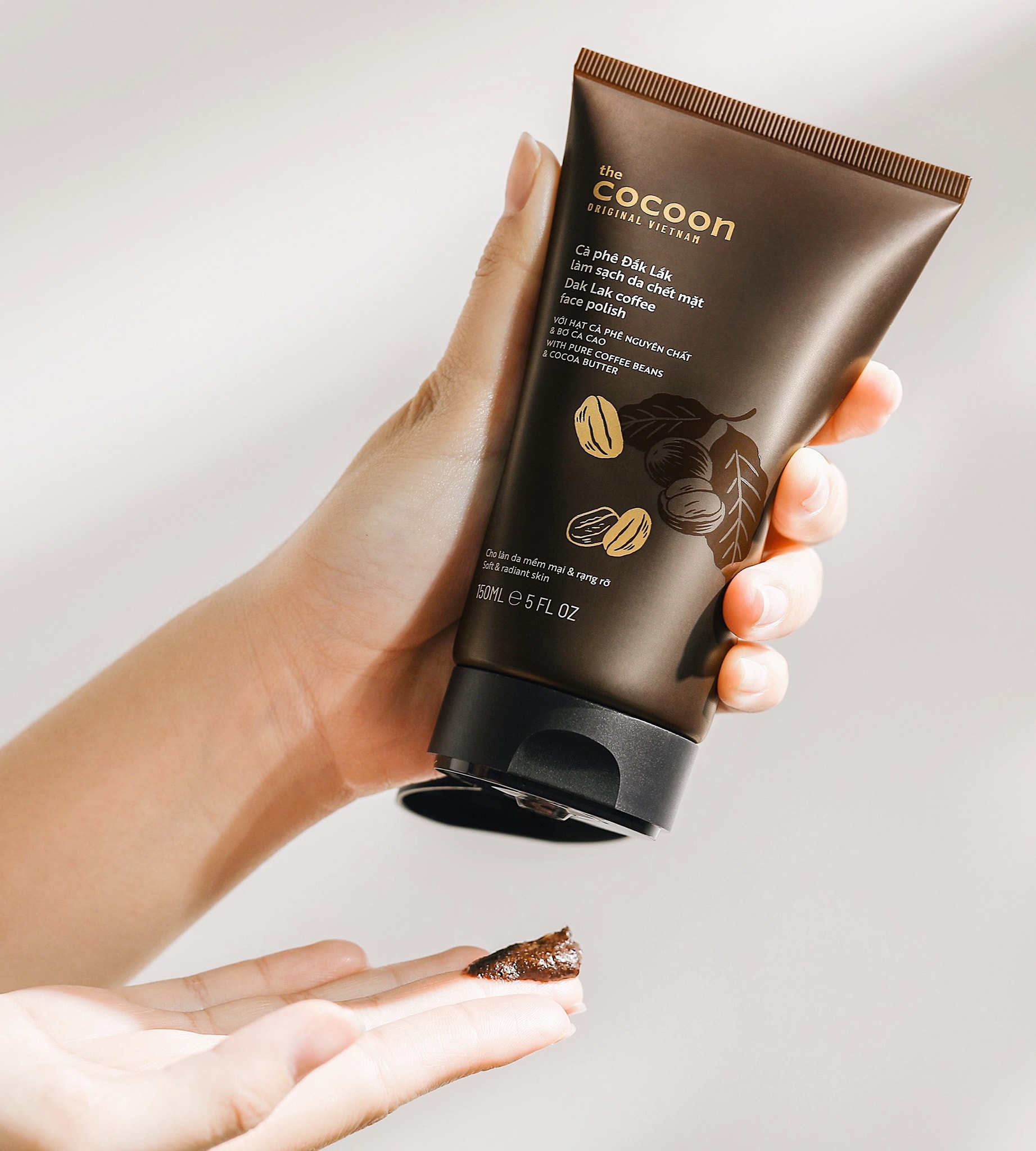 Mua tại TiktokCÀ PHÊ ĐẮK LẮK LÀM SẠCH DA CHẾT MẶT COCOON 150ML Cà phê Đắk Lắk làm sạch da chết mặt là sự kết hợp giữa những hạt cà phê Đắk Lắk nguyên chất xay nhuyễn giàu cafein, hòa quyện trong bơ cao Tiền Giang, kết hợp thêm dầu hoa rum và vitamin E mang đến các công dụng ưu việt như: