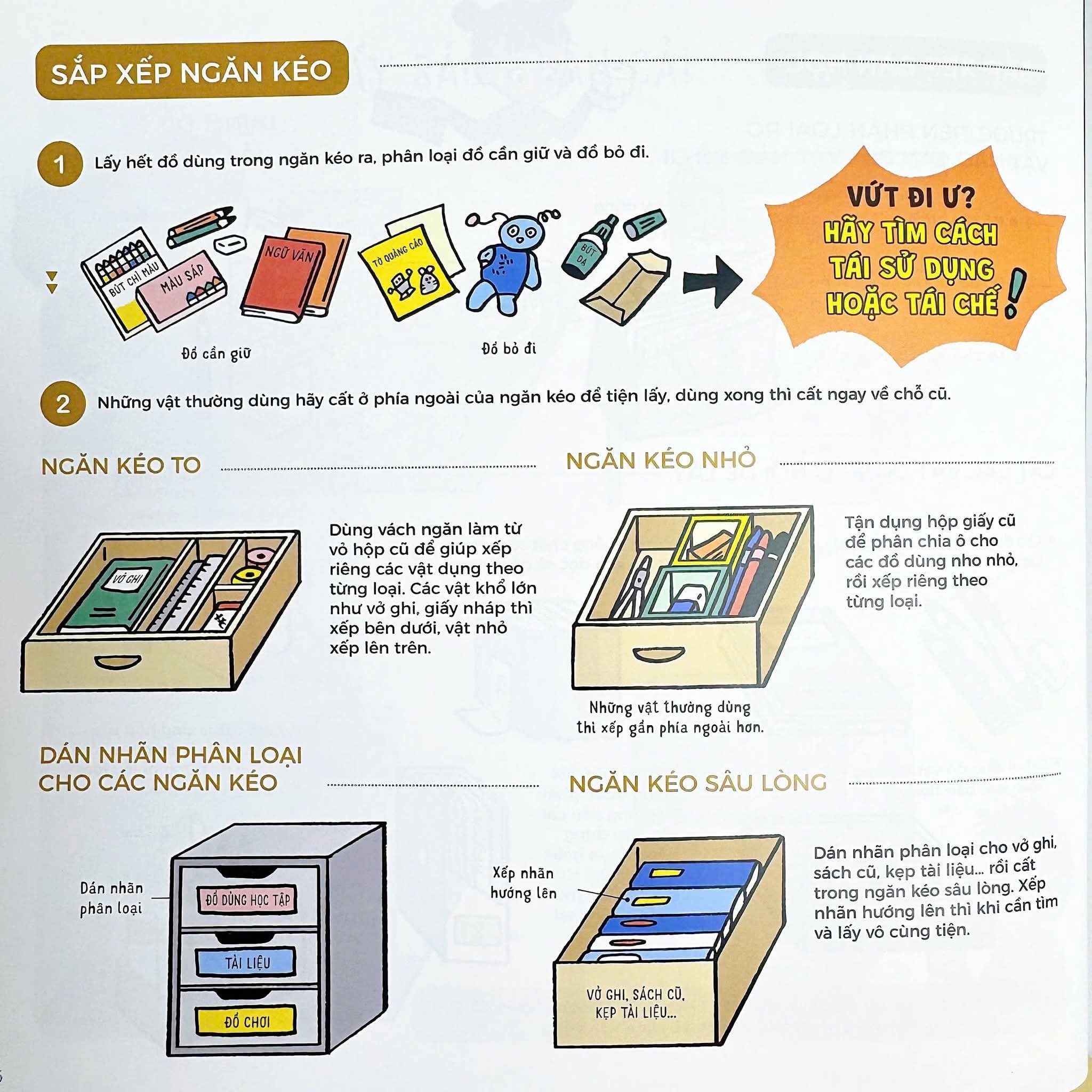Với các minh hoạ chi tiết và lời giải thích đơn giản dễ hiểu, bộ sách sẽ giúp độc giả nhỏ tuổi nắm chắc các kĩ năng làm việc nhà cơ bản. Sắp xếp phòng