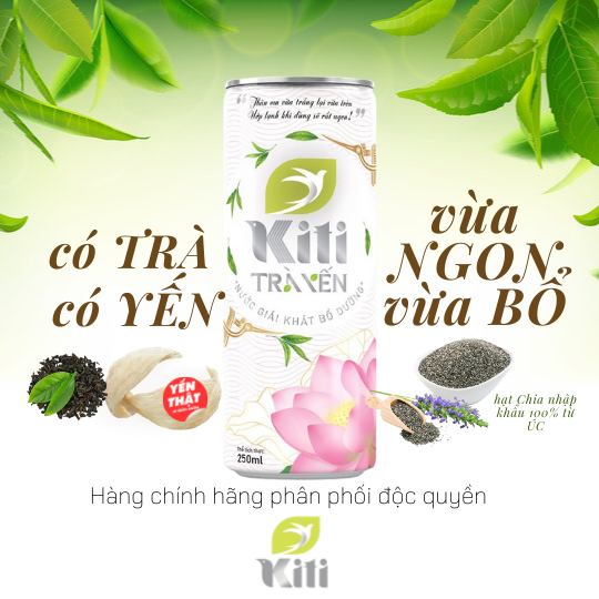 TRÀ YẾN KITI là sản phẩm nước giải khát bổ dưỡng với sự kết hợp các dưỡng chất thảo mộc 100% từ thiên nhiên kết hợp cùng 18 loại dưỡng chất quý giá có trong Yến Sào được lấy về từ vùng biển đảo Việt Nam, những búp trà non vùng cao nguyên đại ngàn sản xuất theo tiêu chuẩn và công thức Nhật Bản một quốc gia số 1 trong lĩnh vực về Trà.