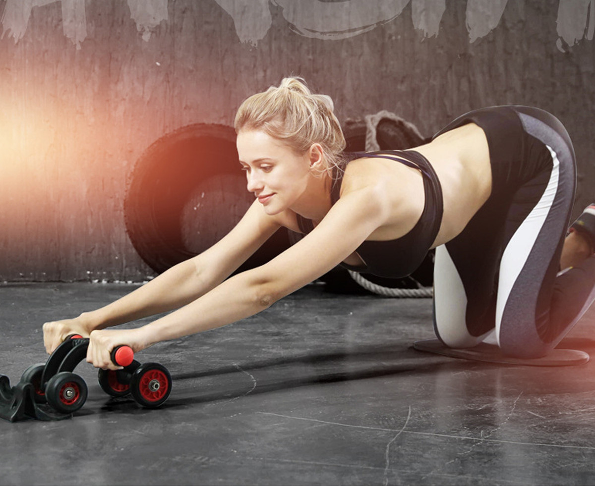Máy Tập Bụng Con Lăn 4 Bánh Mới Nhất - Tặng Kèm Đệm Lót Gối Chuyên Dụng